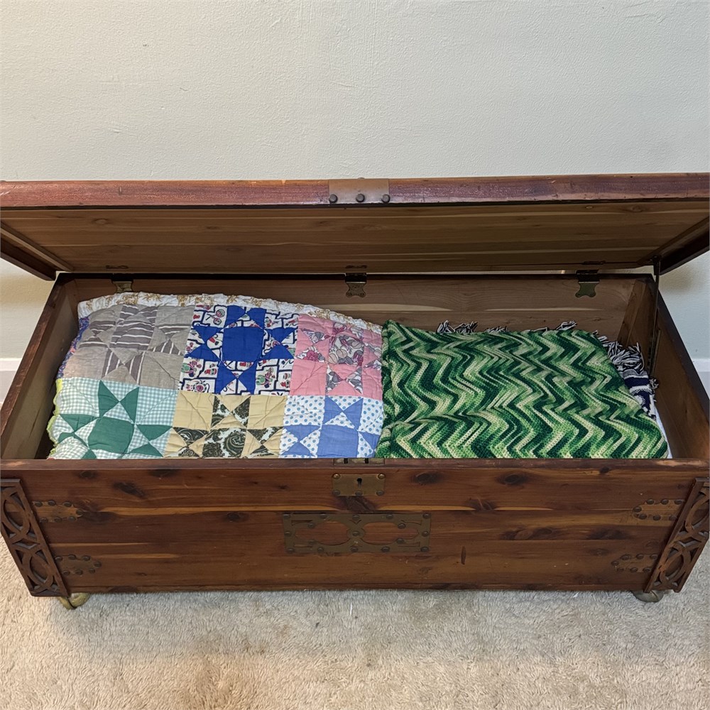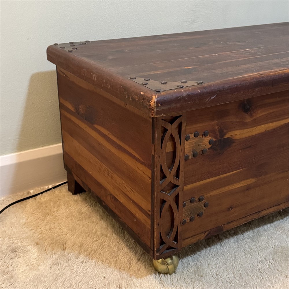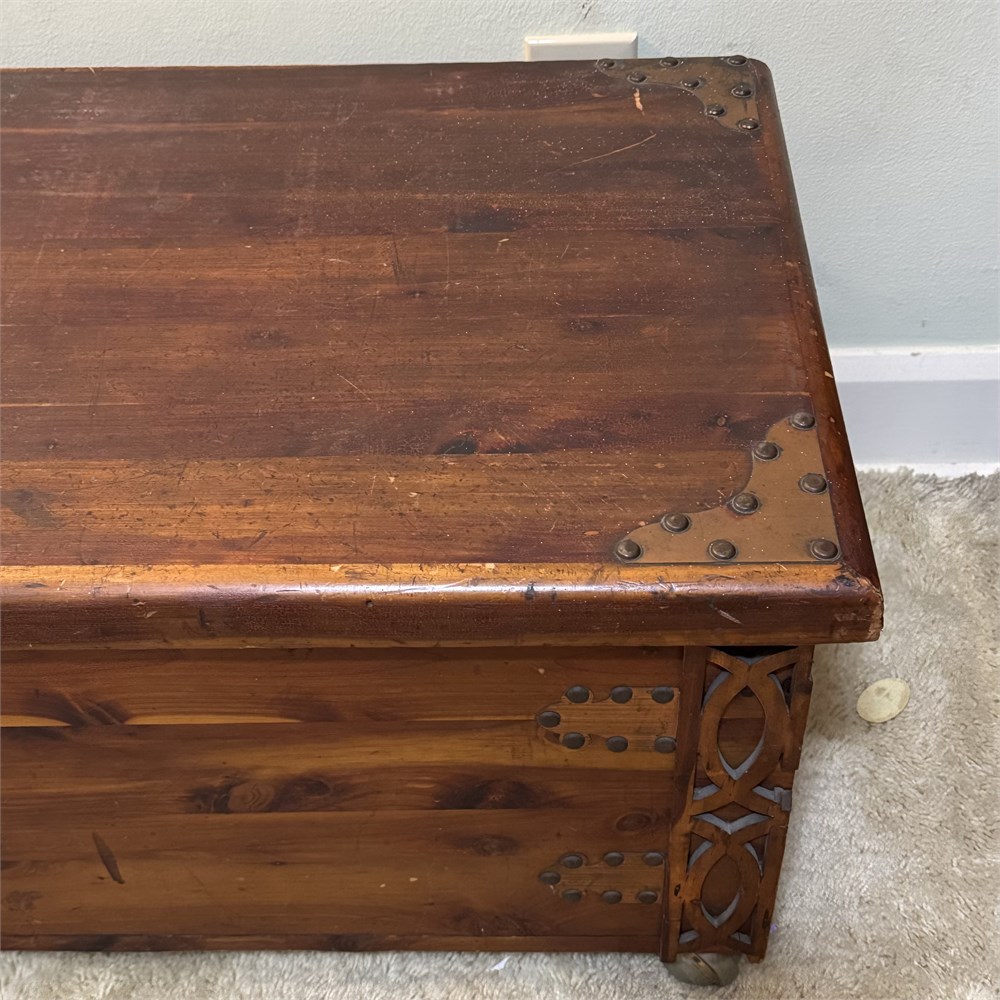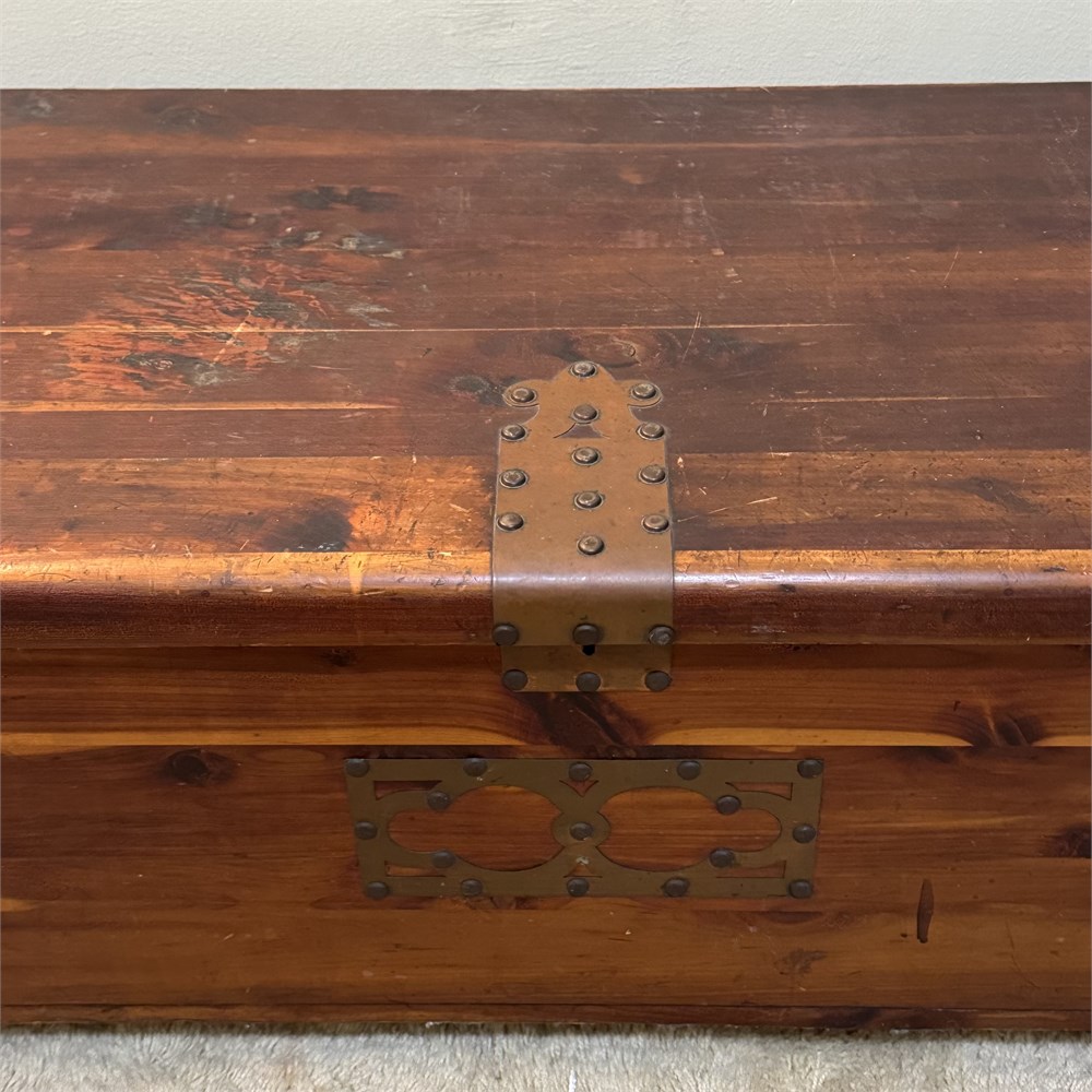 Old Cedar Blanket Chest with Copper and Nailhead Ornaments