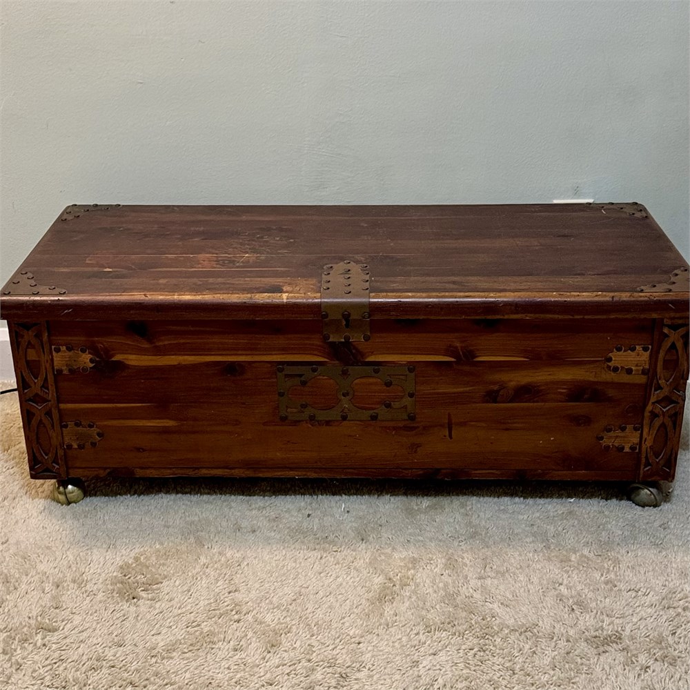 Old Cedar Blanket Chest with Copper and Nailhead Ornaments View Watchlist >