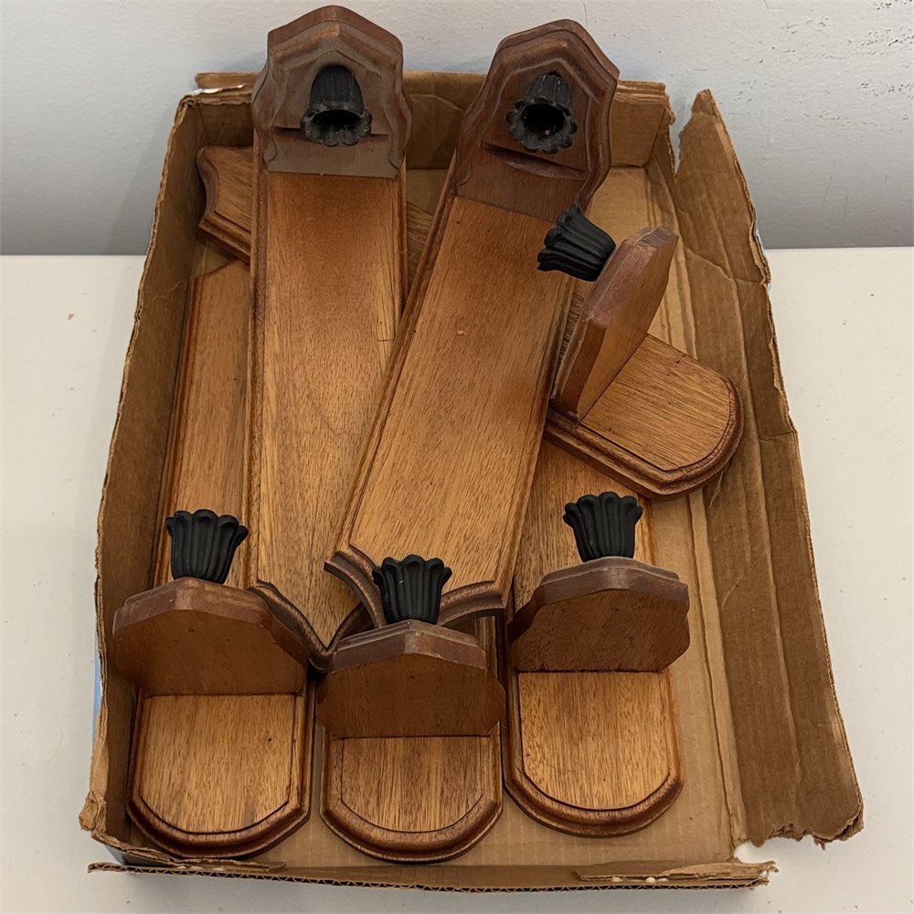 Lot of 6 Primitive Style Wall Mount Wood Candle Holders