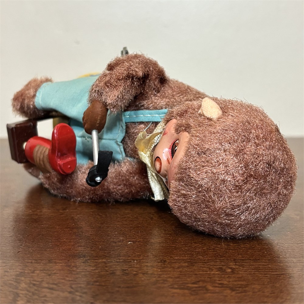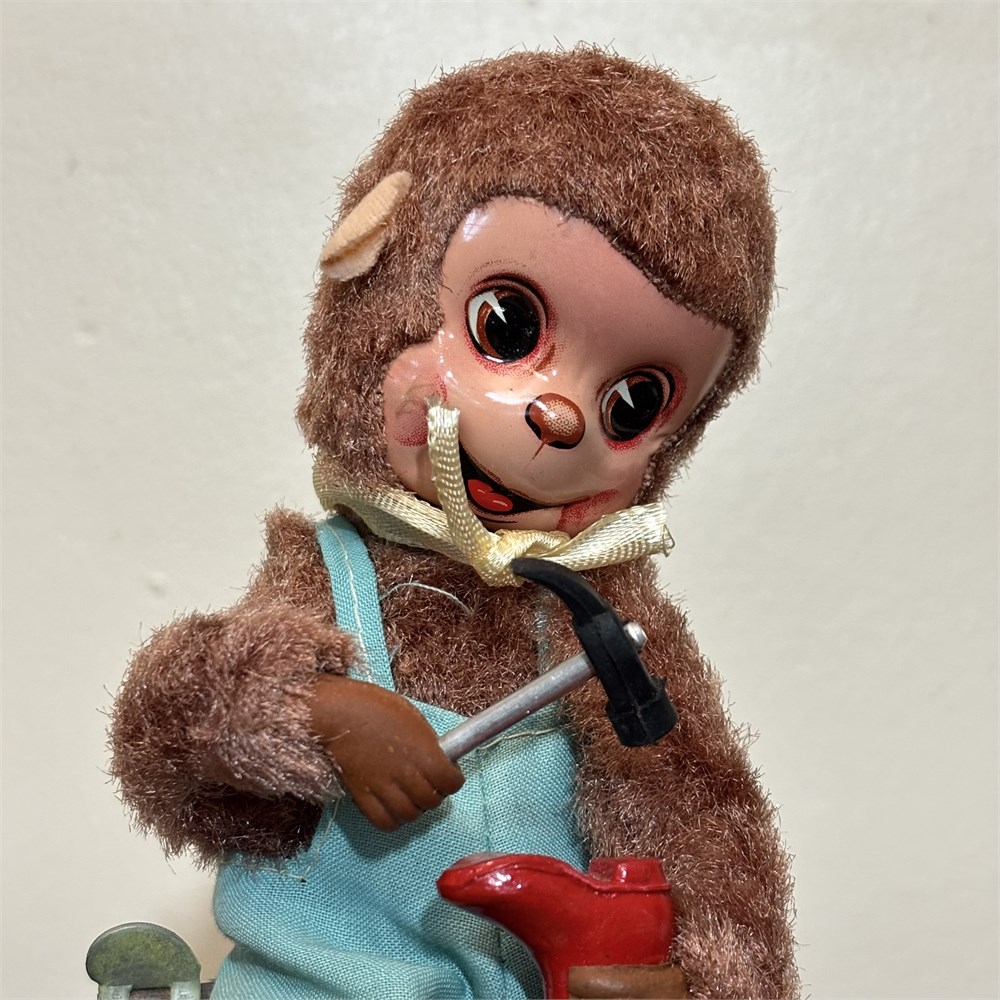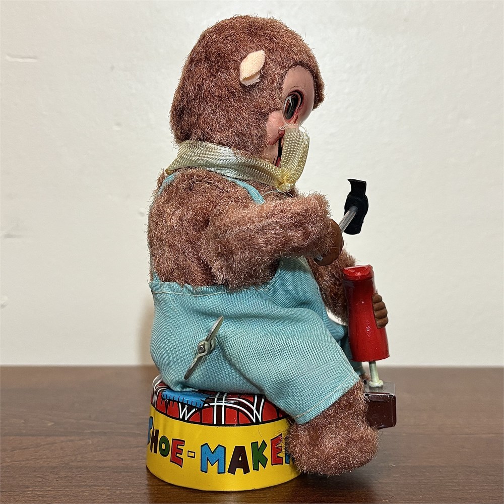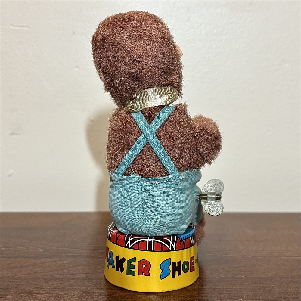 Vintage Tin Litho Monkey Shoemaker Wind-Up Toy, Made in Japan