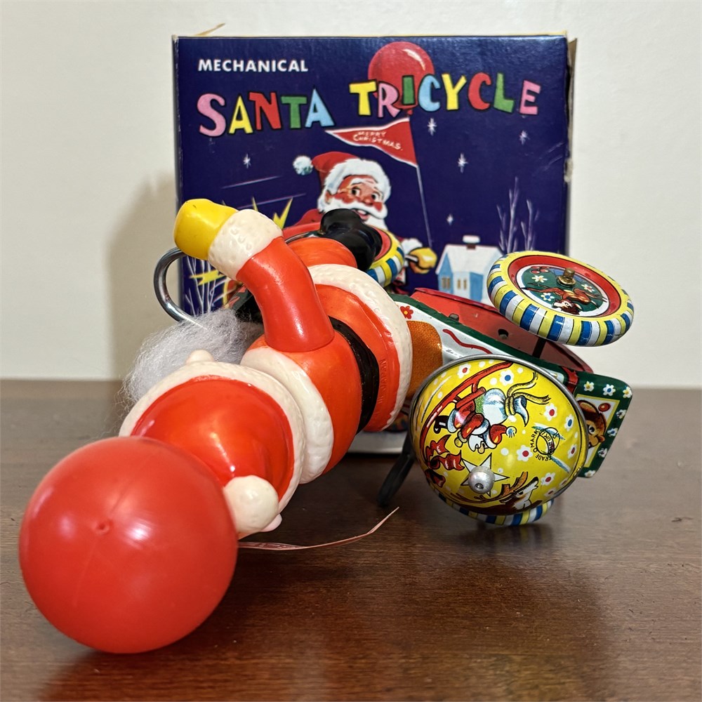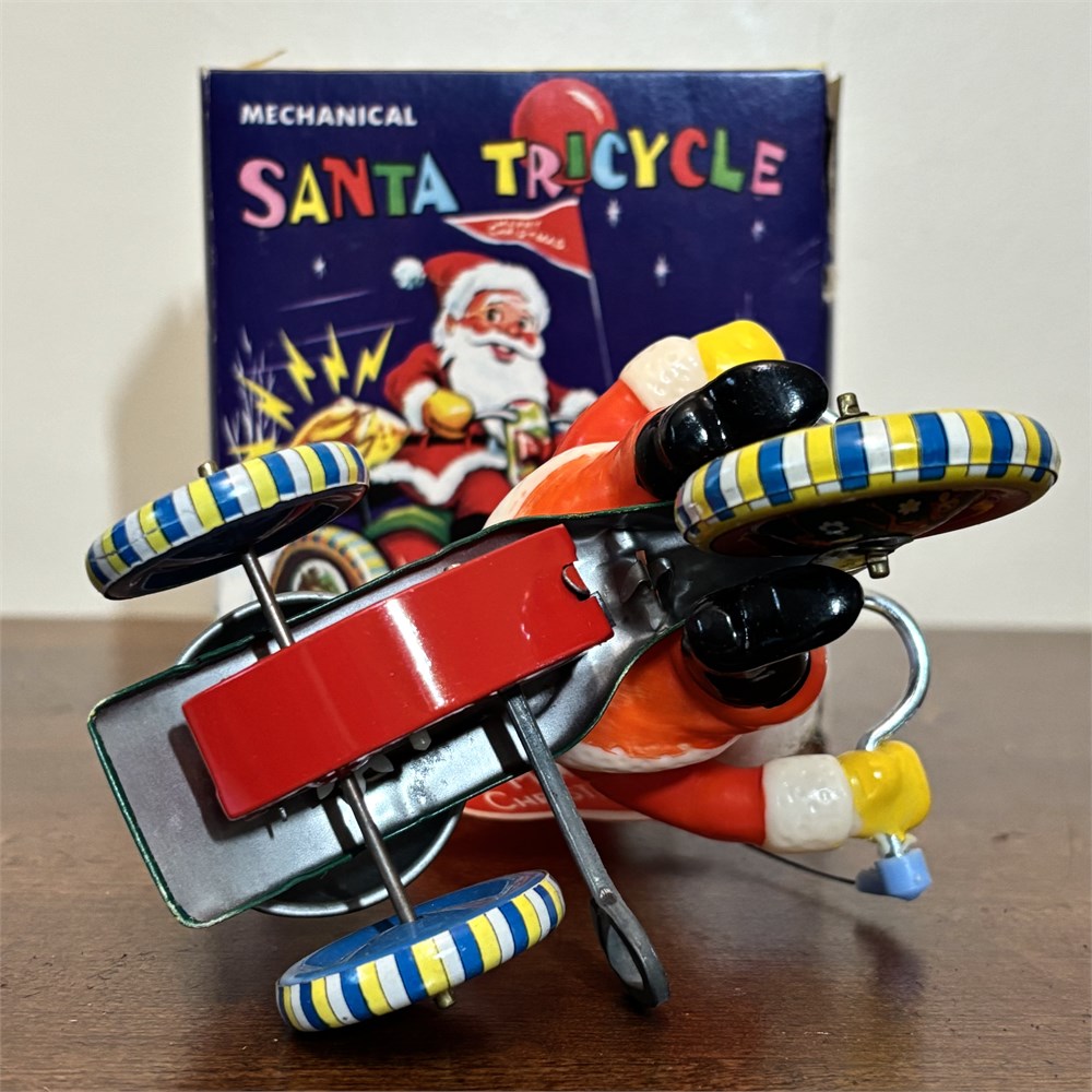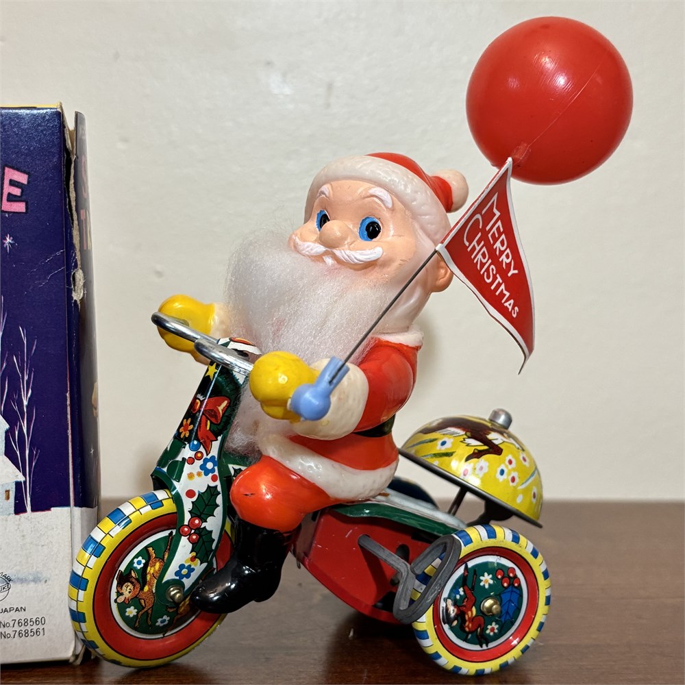 Vintage Tin Litho Santa Tricycle Mechanical Wind-Up Toy w/ Original Box View Watchlist >
