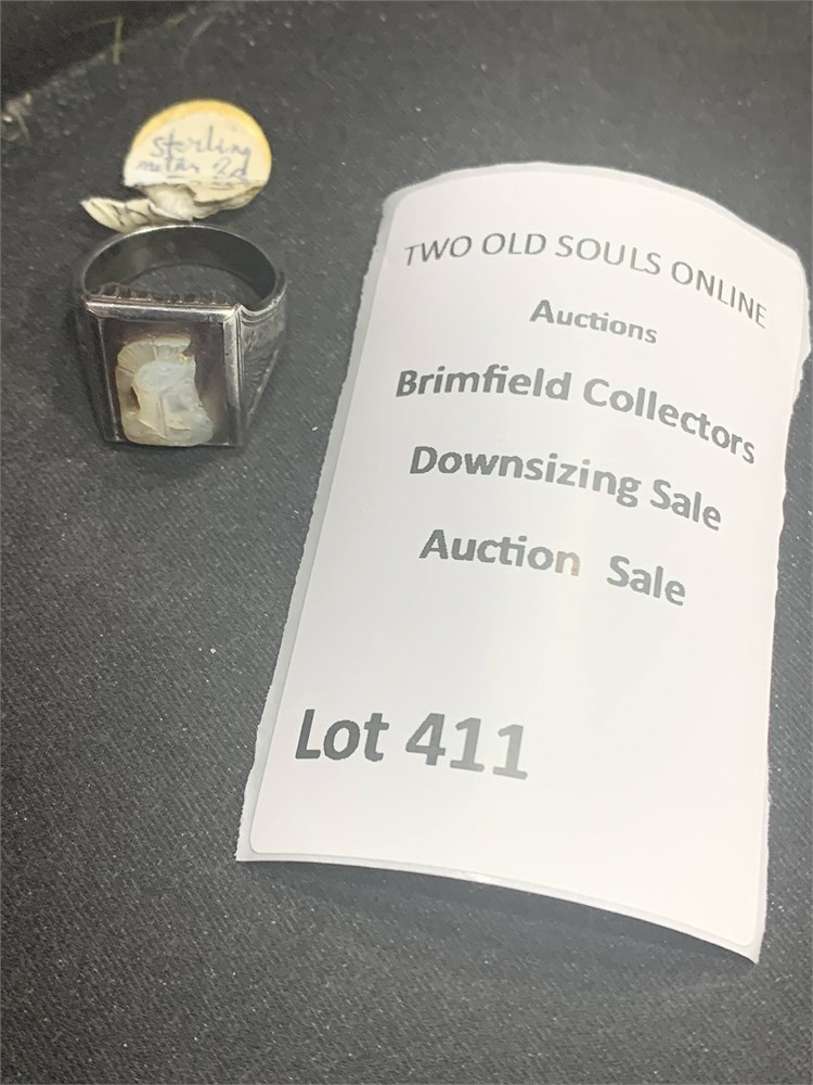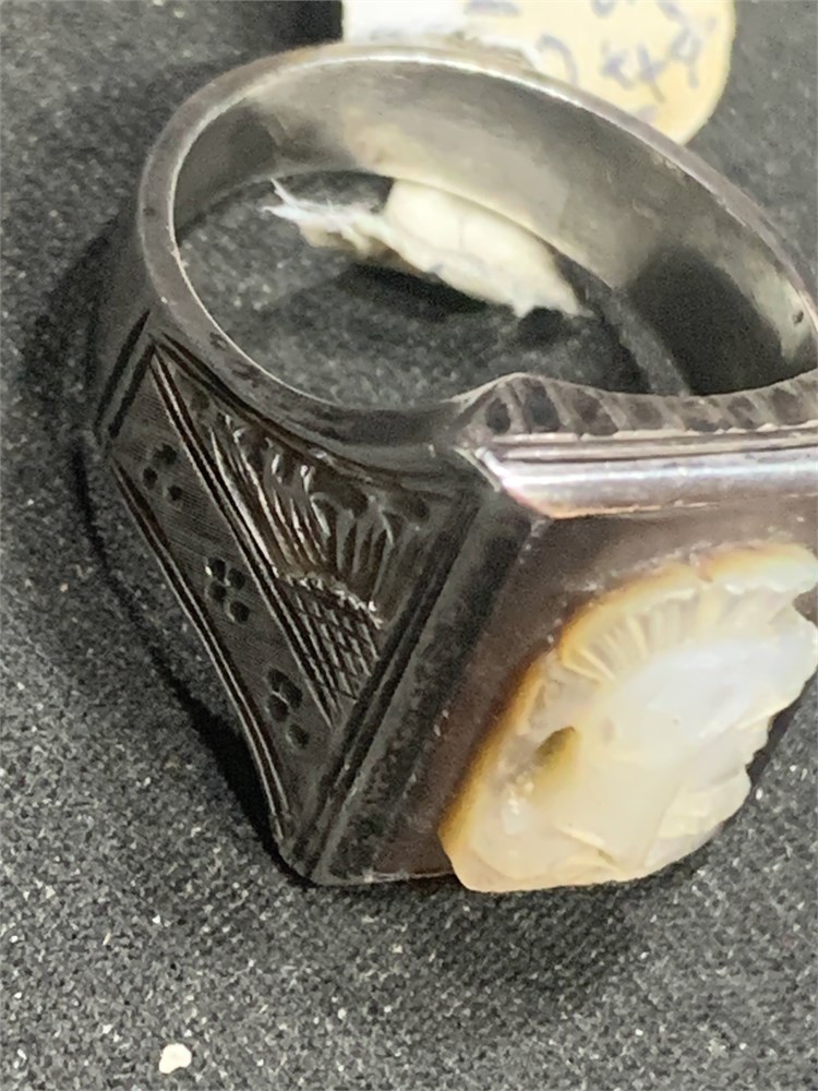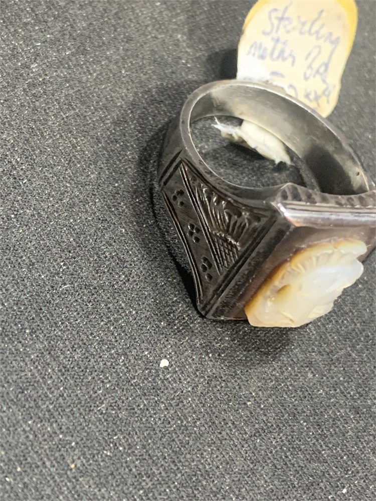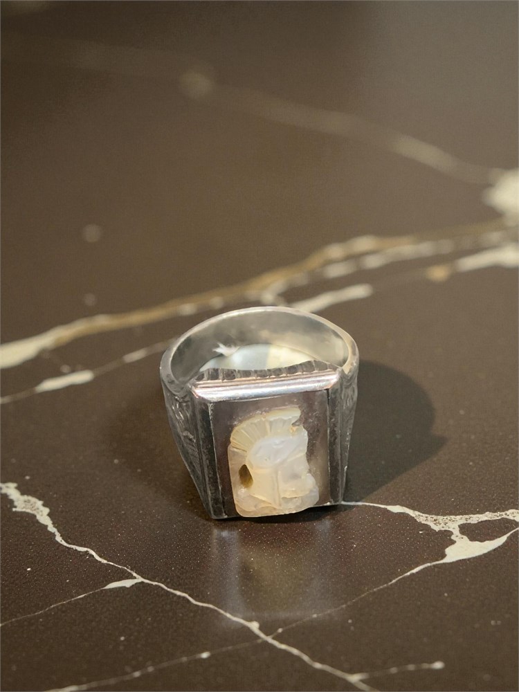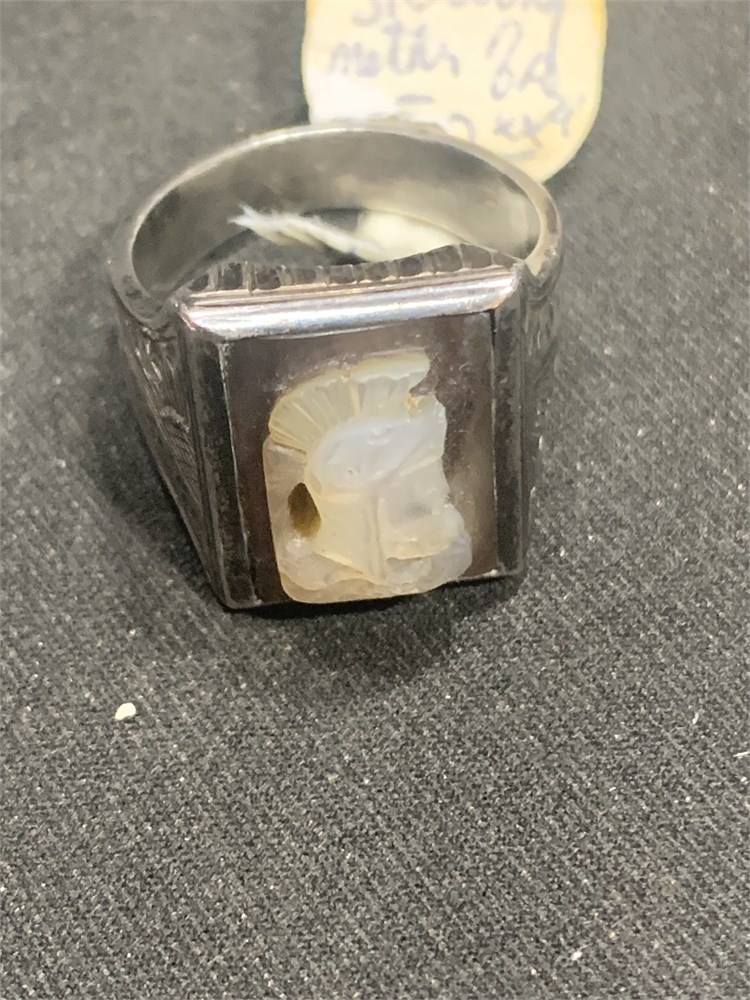 Vintage Sterling Silver Intaglio Roman Soldier Carved Cameo Ring Size 9.5 View Watchlist >