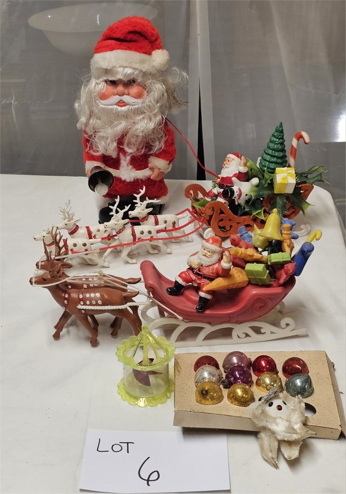 Mixed Vintage Christmas- Battery Op Santa, Plastic Felt Sleigh Santa & Deer View Watchlist >