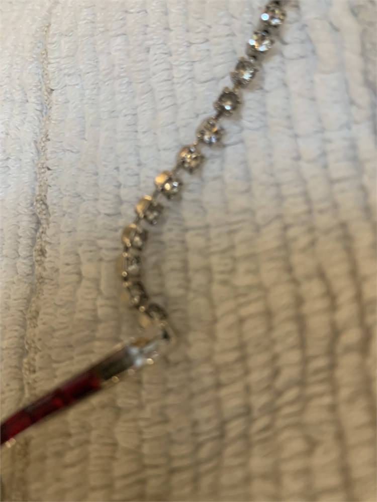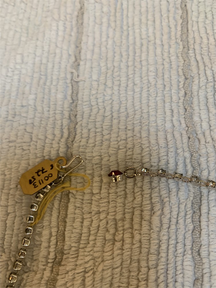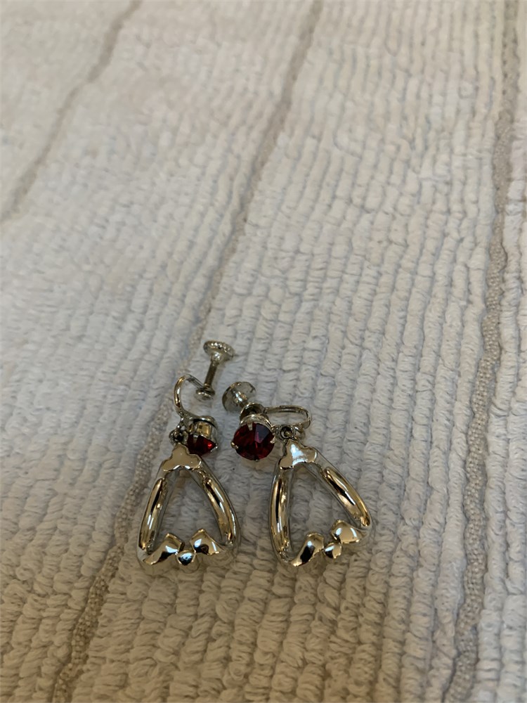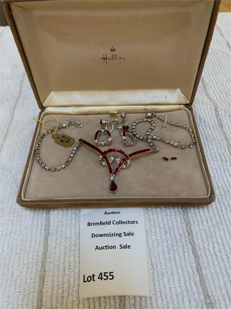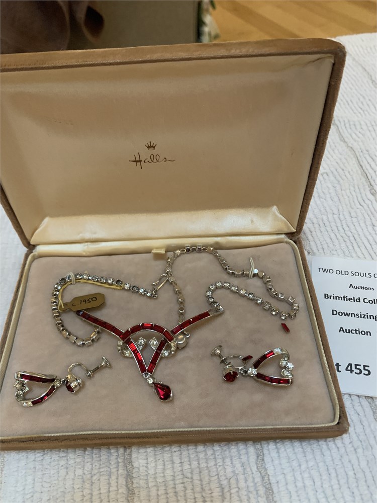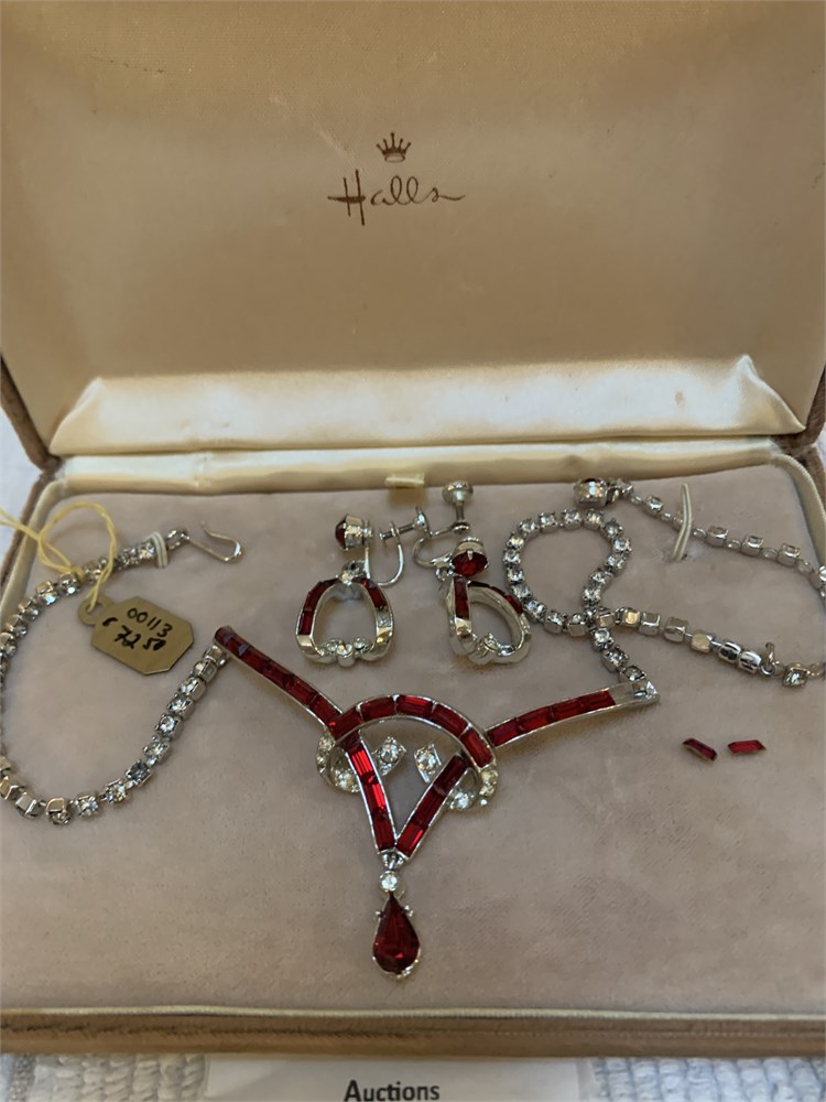 Art Deco Ruby Red & Clear Rhinestone Necklace W/Matching Screw Back Earrings View Watchlist >