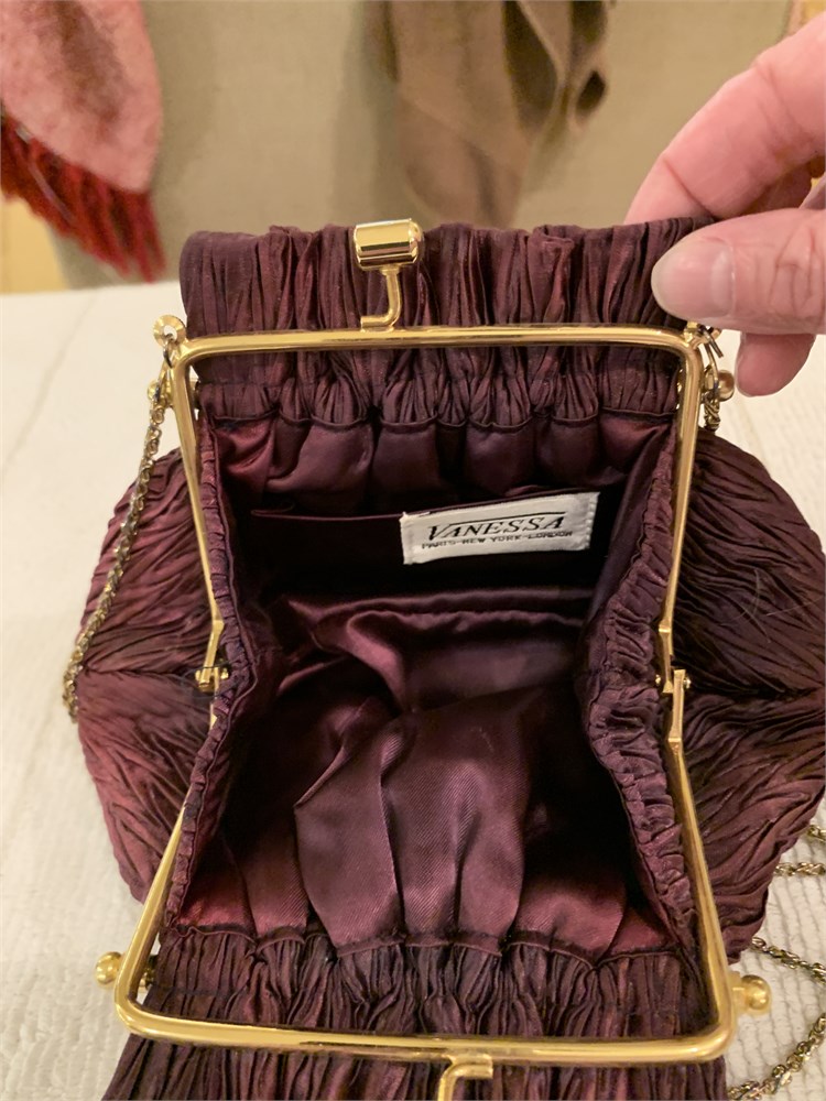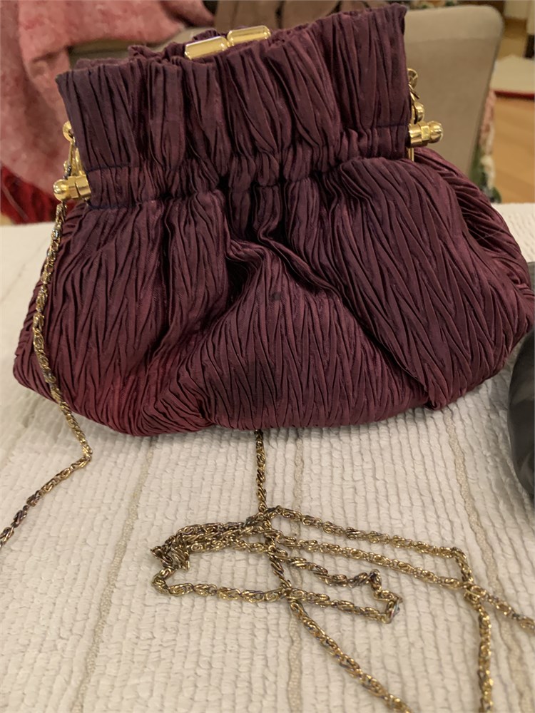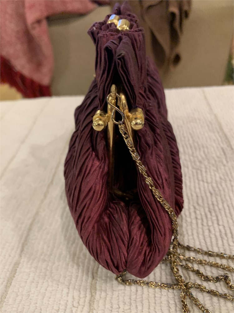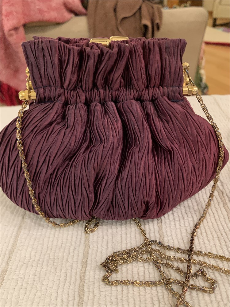 Vintage Purple Vanessa Ribbed Silk Handbag W/Gold Chain Strap View Watchlist >
