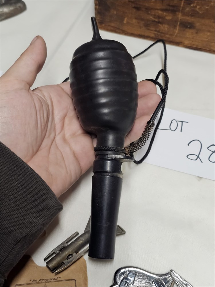 Mixed Vintage Lot- Conval, Ohio Cast Bookend, Tabacco Tin, Rocket Reamer Pipe Tool, Duck Call & More