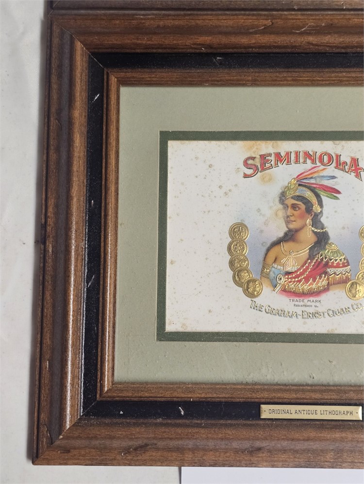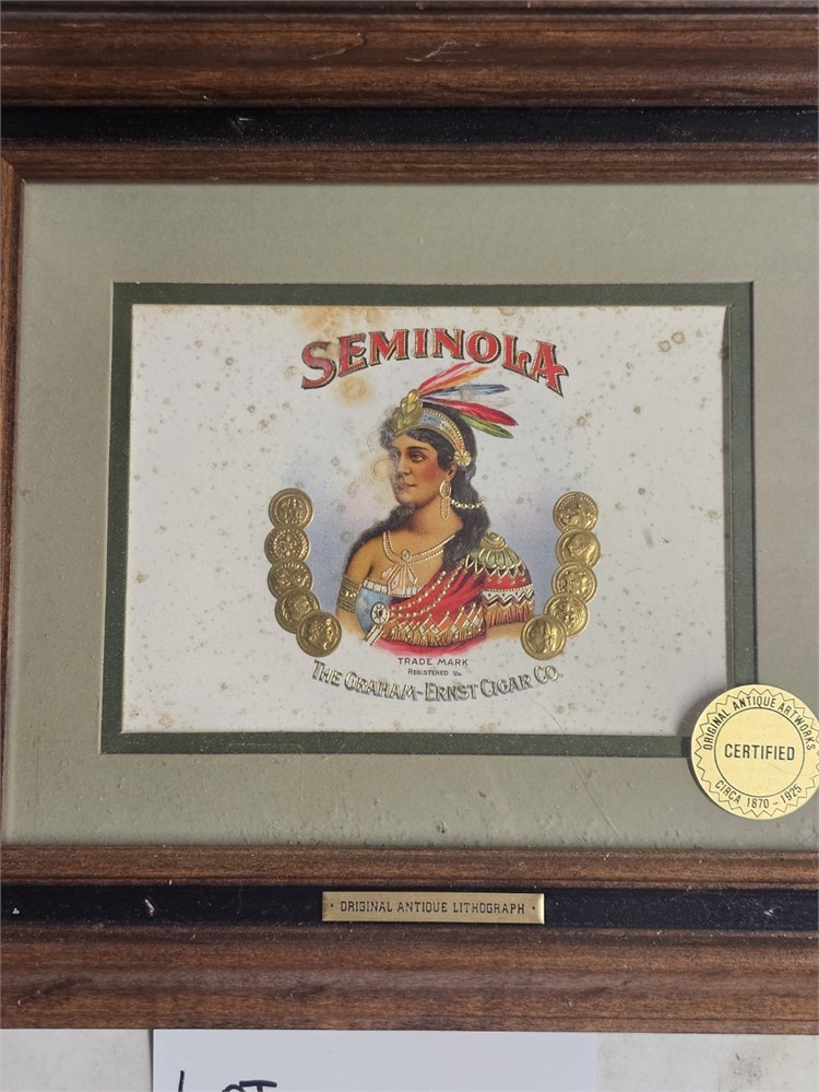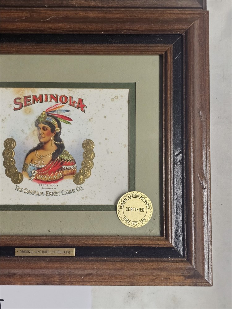 Stone Lithograph Cigar Box Label Framed Pony Post & Seminola View Watchlist >
