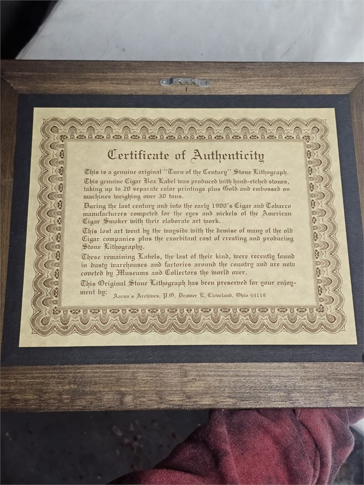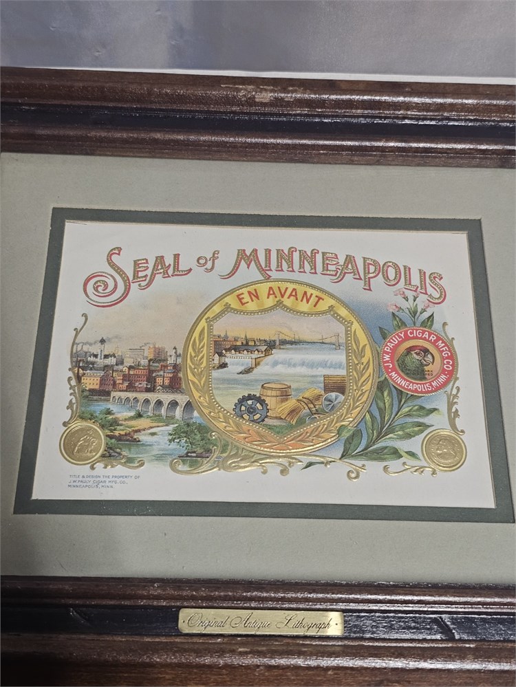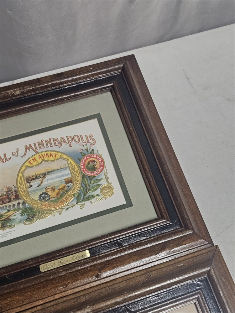 Stone Lithograph Cigar Box Label Framed Seal Of Minneapolis & Duke Of Tarent
