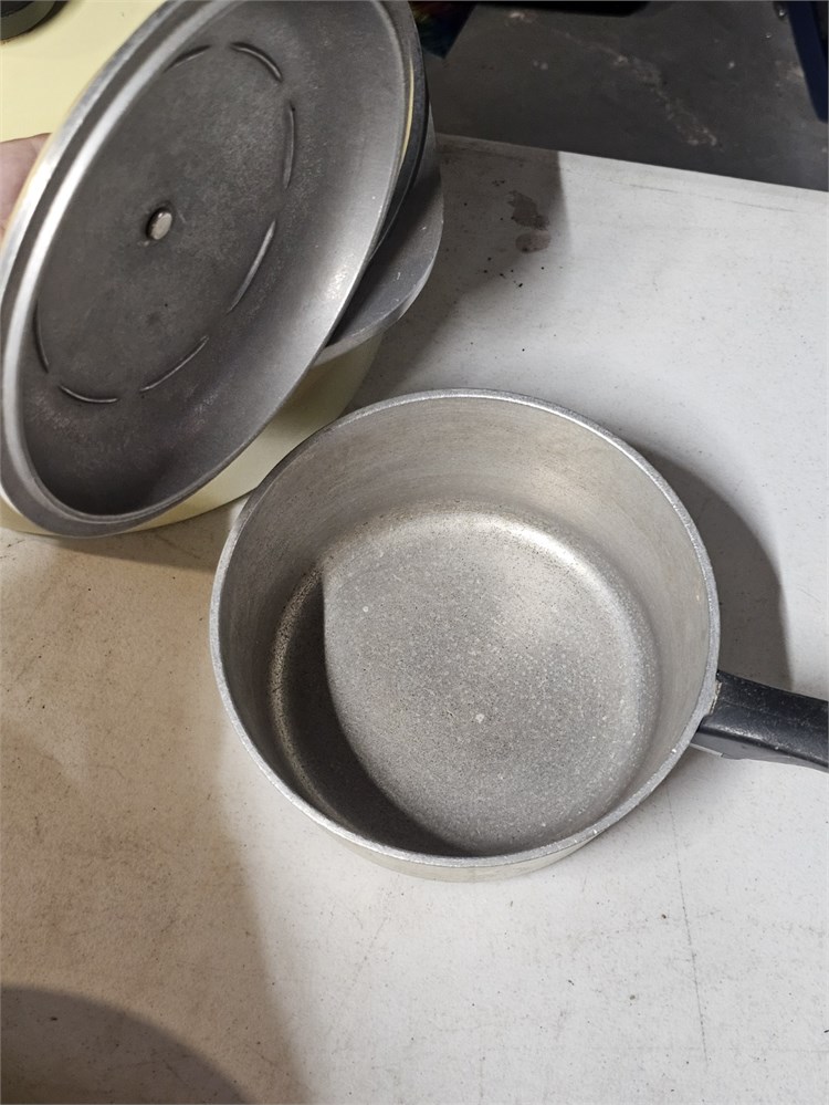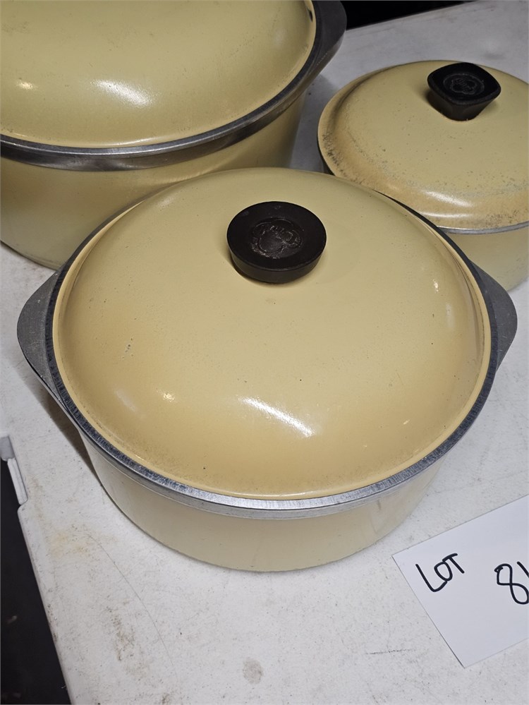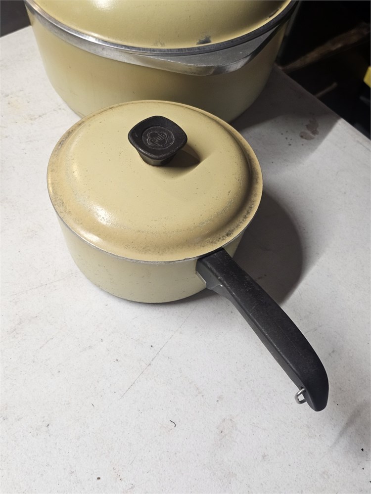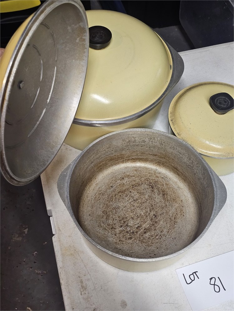 Clum Aluminum "Harvest Gold" Large & Med Dutch Ovens & Sauce Pan View Watchlist >