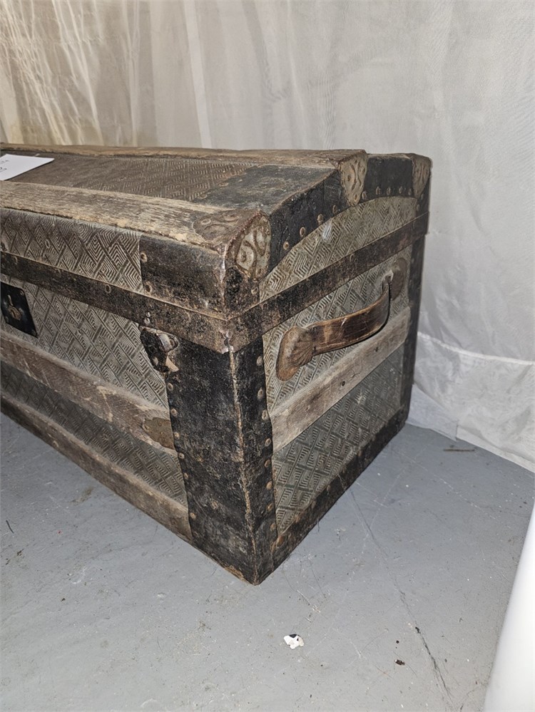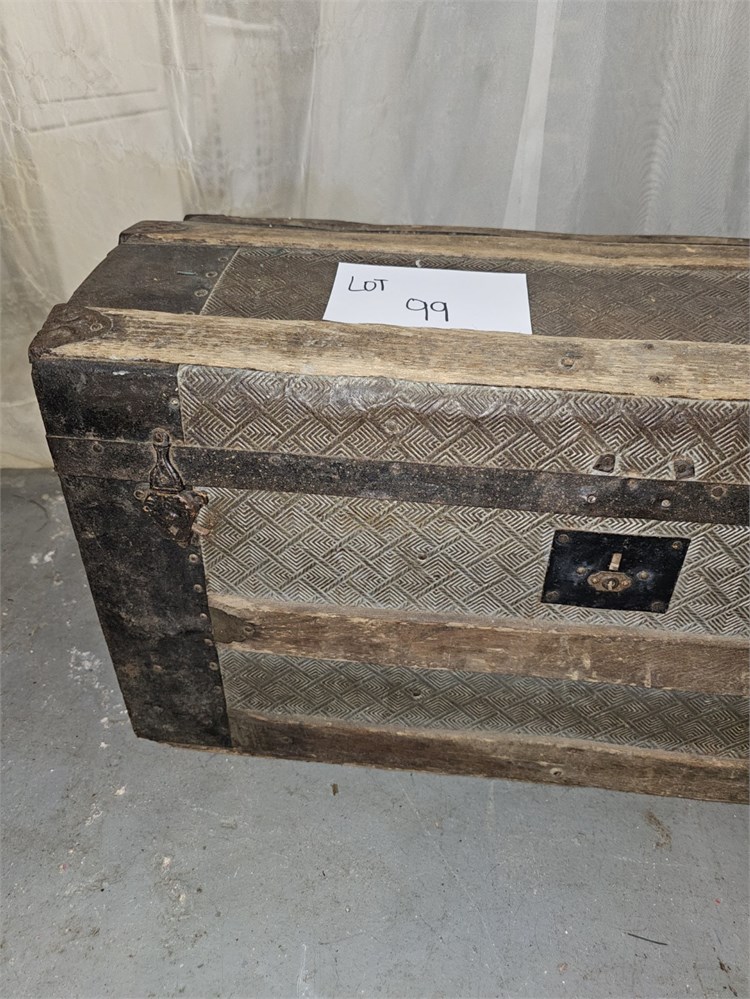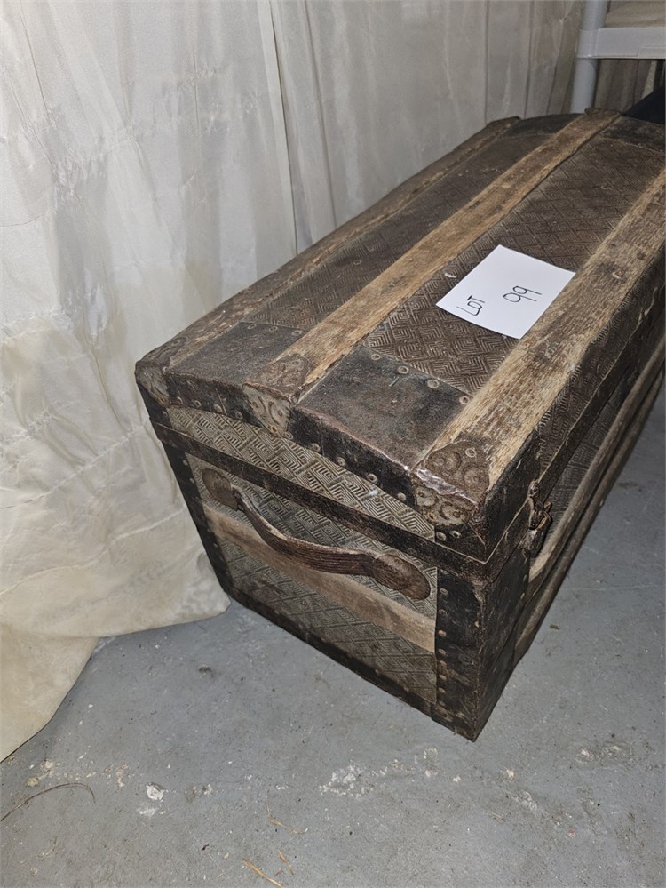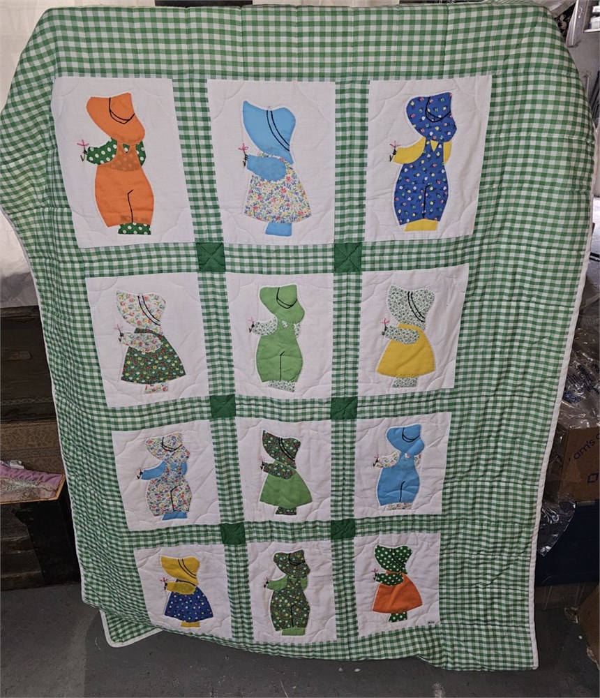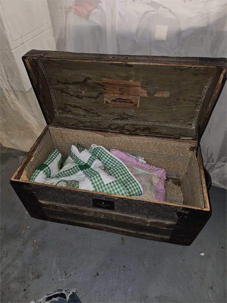 Antique Humpback Chest With Childs Quilts Handmade Patchwork Quilt 68"x40" & Sunbonnet Quilt 60"x40"