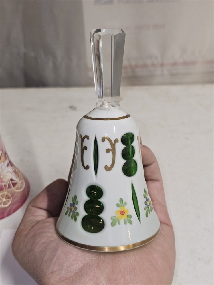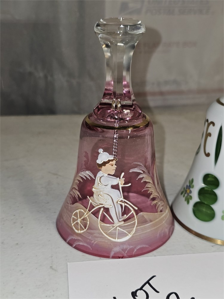 Fenton HP Cranberry Bell 5"H & Bohemian Case Glass Bell 5.5"H