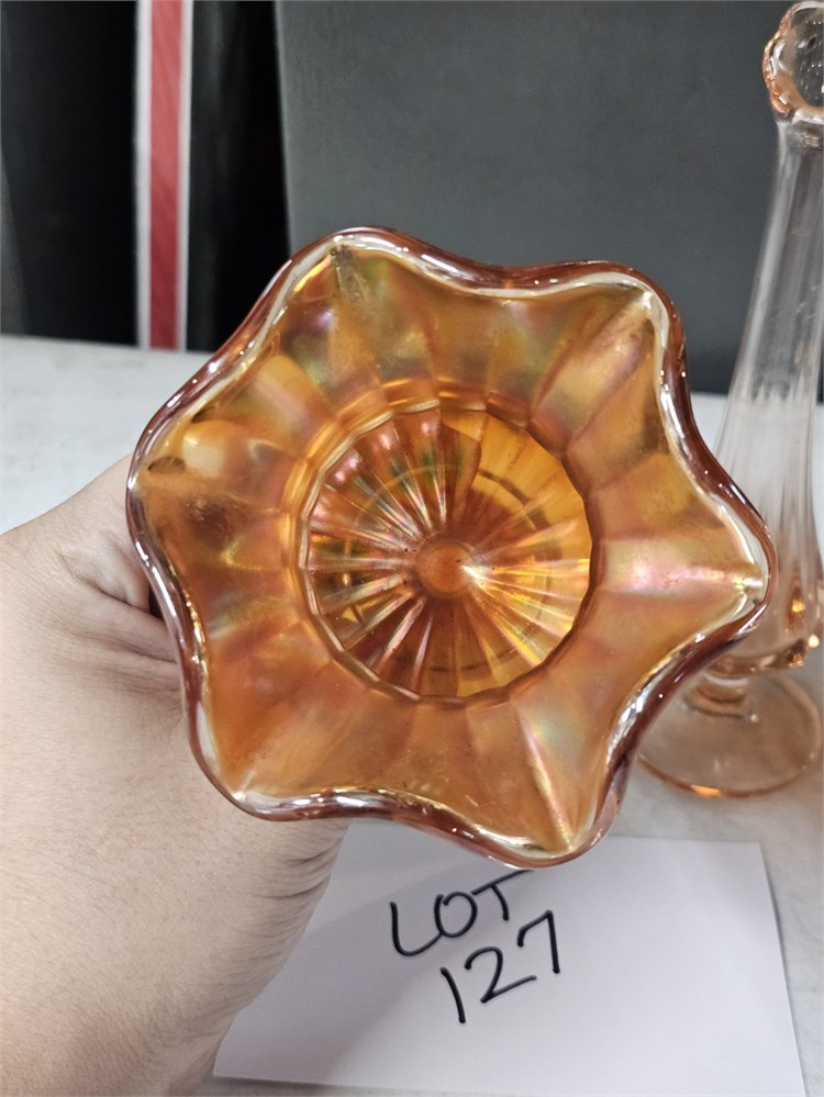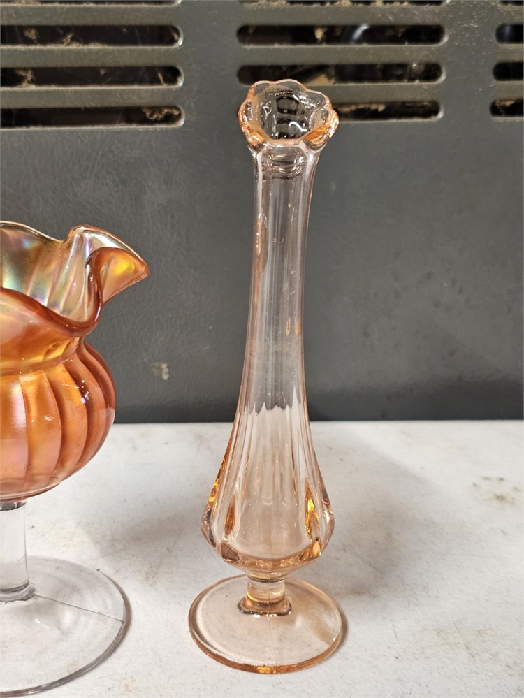 Fenton Pink Swung Vase & Fenton Marigold Carnival Compote