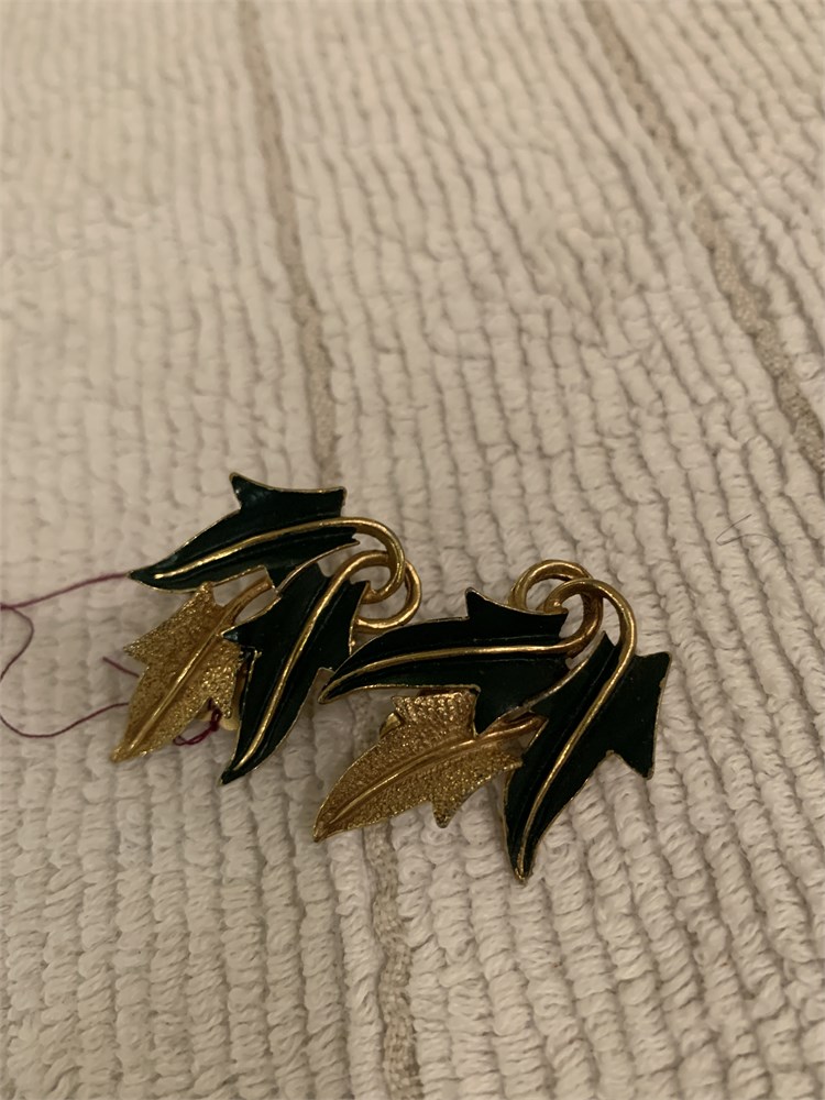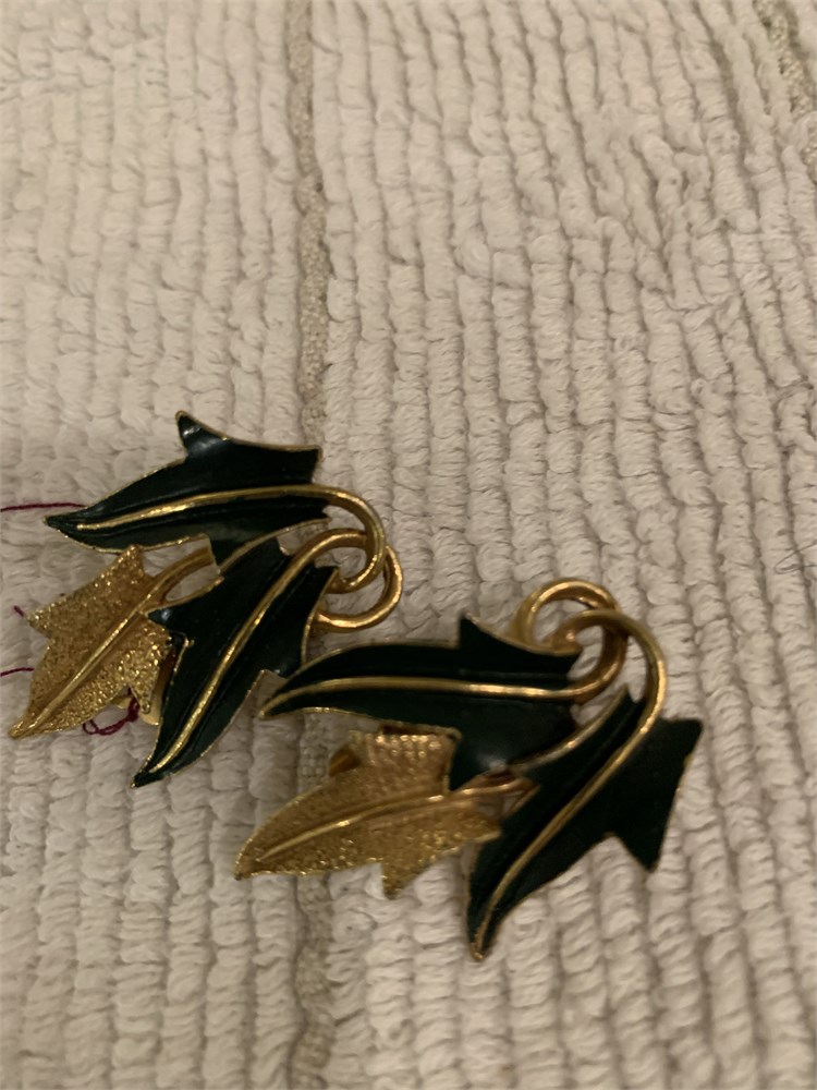 Mode Art Black Enamel/Gold-Tone Leaf & Coro Purple Austrian Crystal Earrings View Watchlist >