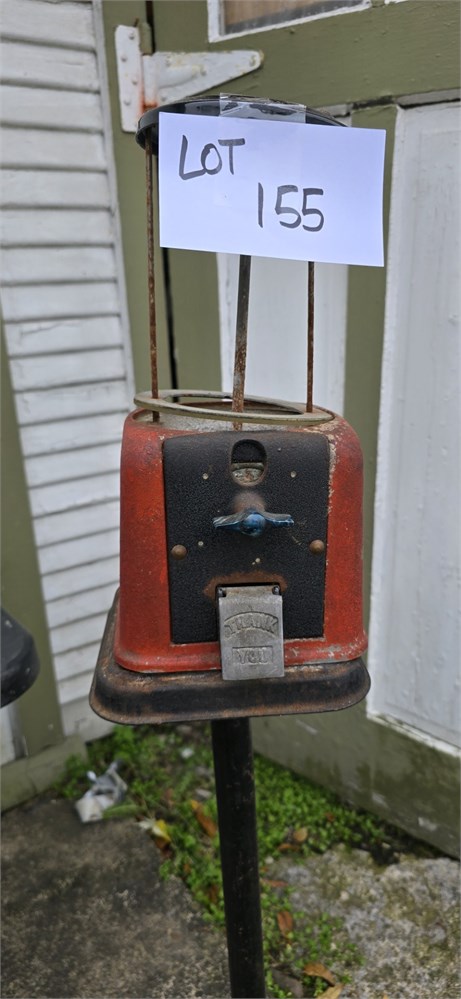 Antique One Cent Penny Coin Op Bubble Gum Machine - Missing Globe View Watchlist >