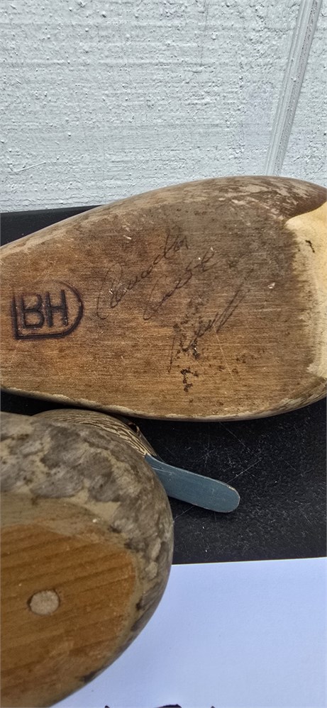 Wood Carved Duck Decoy Green Winged Teal & BH Wood Carved Signed Canadian Geese View Watchlist >
