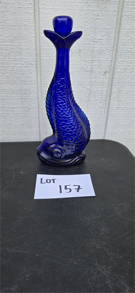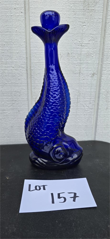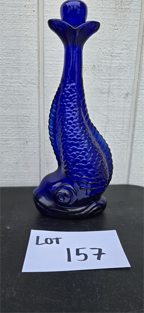 Vintage Cobalt 13" Italy Dolphin Fish Bottle With Stopper View Watchlist >