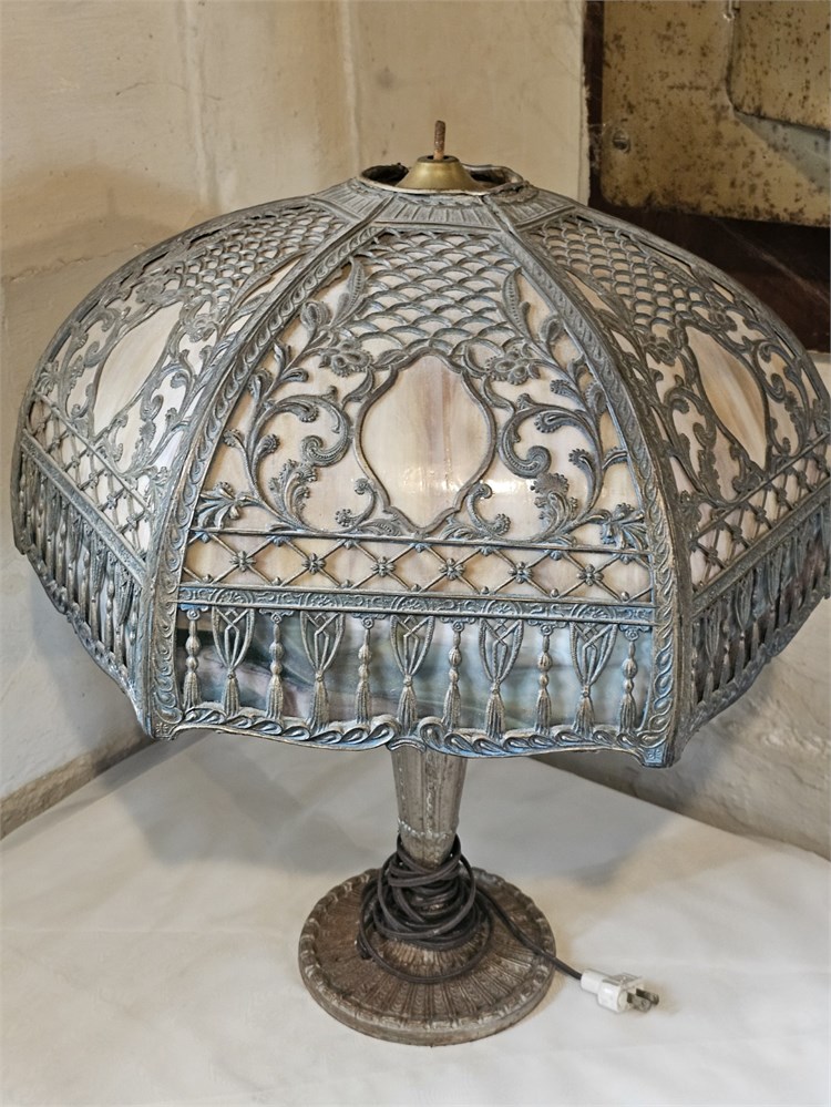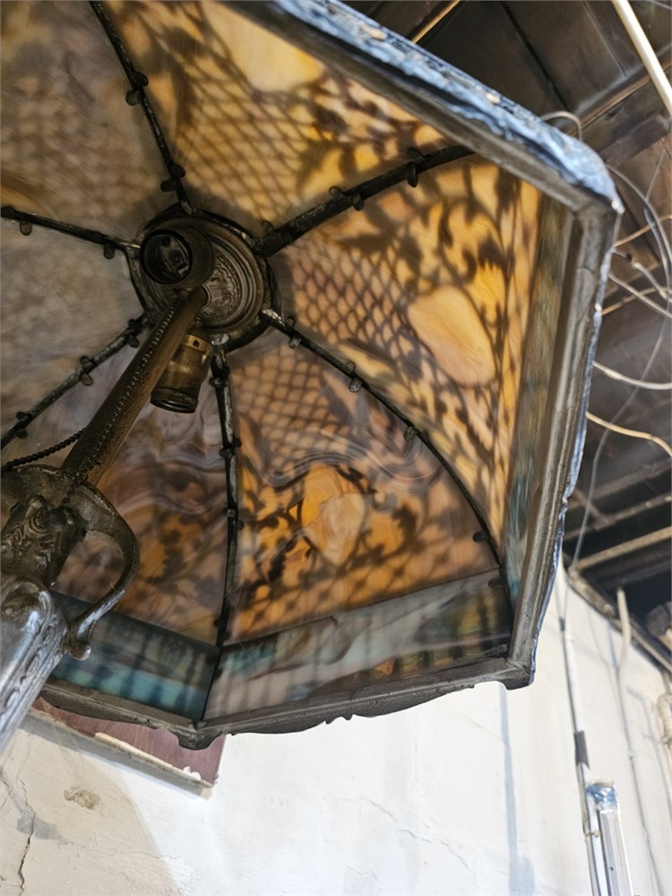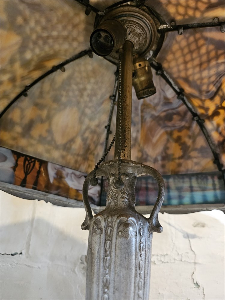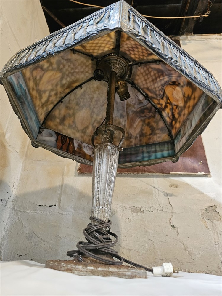 Antique Miller? Early 1900s Slag Glass Lamp With Metal Base Missing Top Cap & Finnel