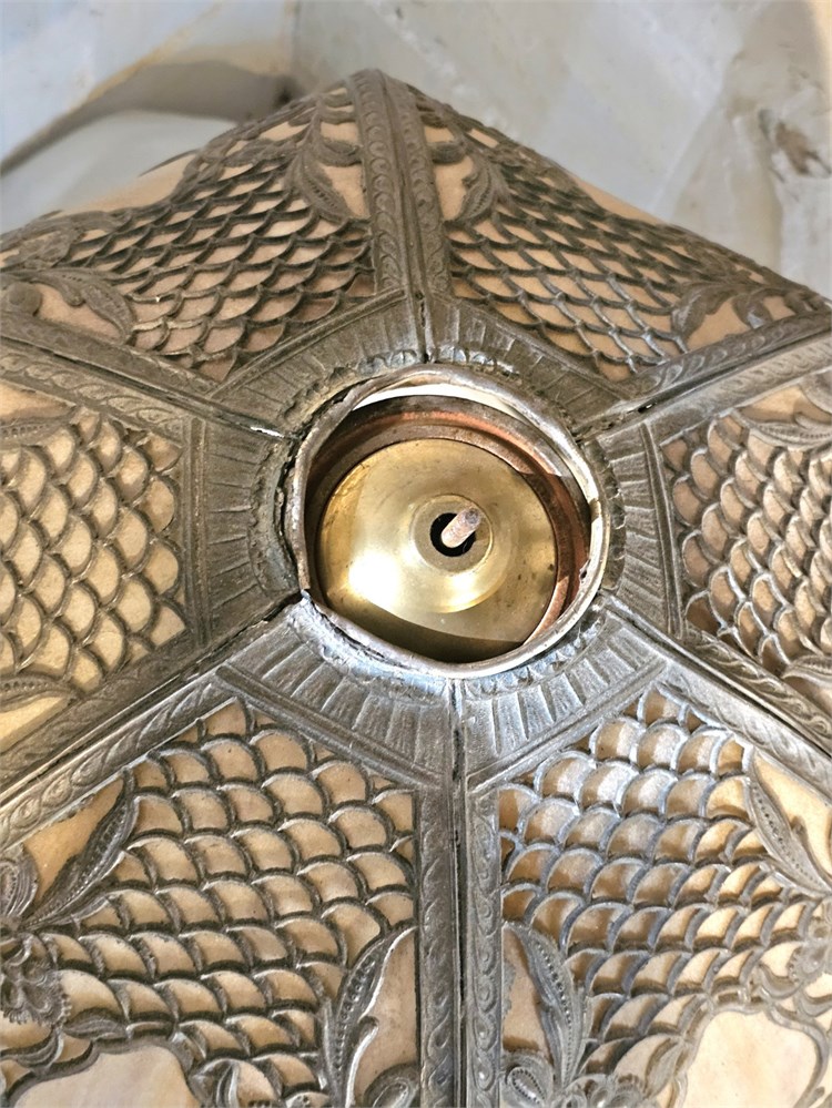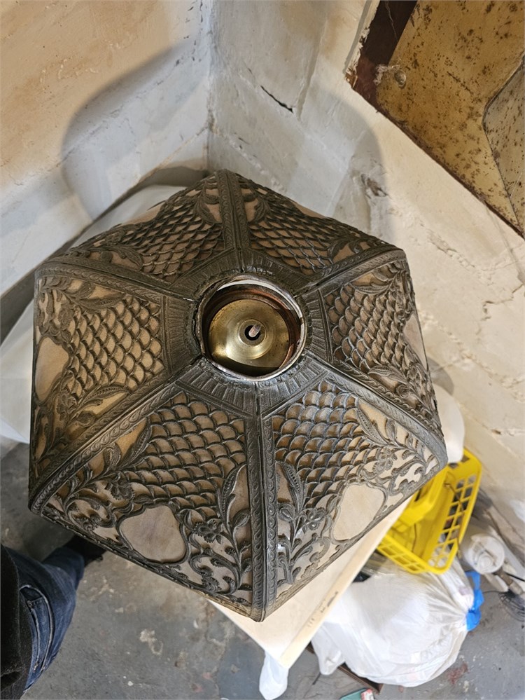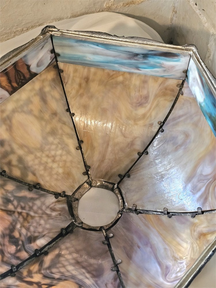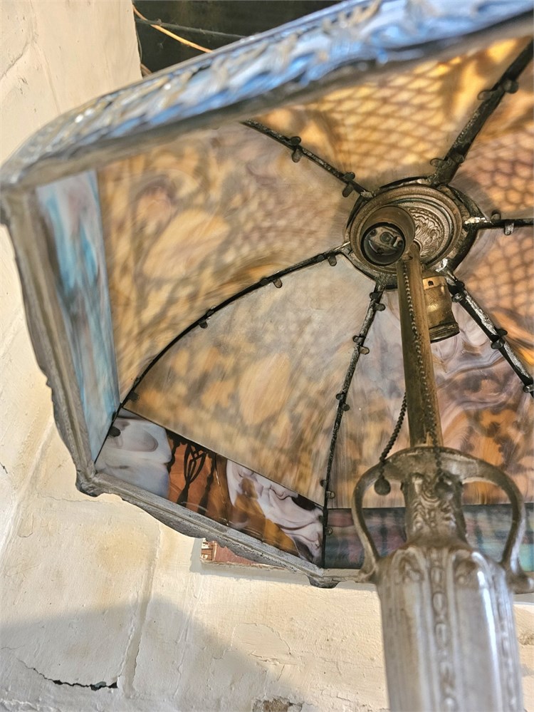 Antique Miller? Early 1900s Slag Glass Lamp With Metal Base Missing Top Cap View Watchlist >