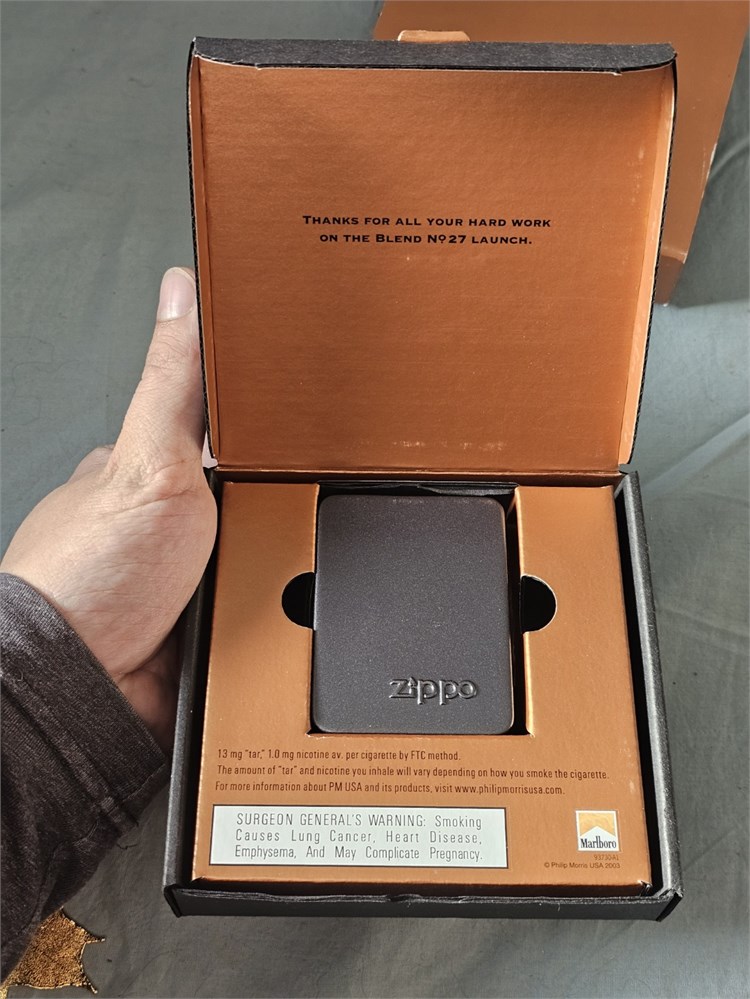 Rare Vintage Sales Representative Marlboro Zippo Blend 27 Lighter In Original Shipping Box & Case, Mint Condition