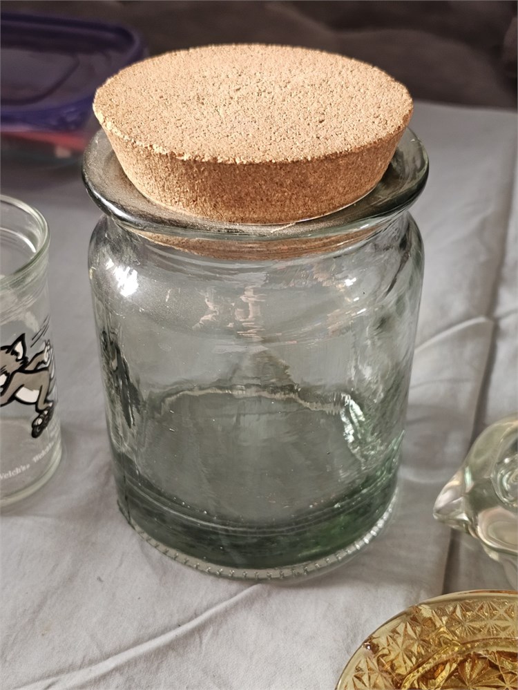 Mixed Glass Lot- Tom & Jerry Cup, Ashtray , Candle Holder, & More