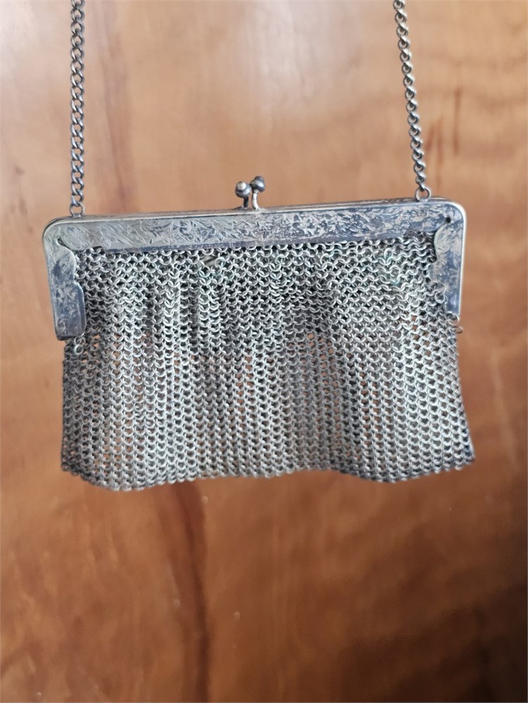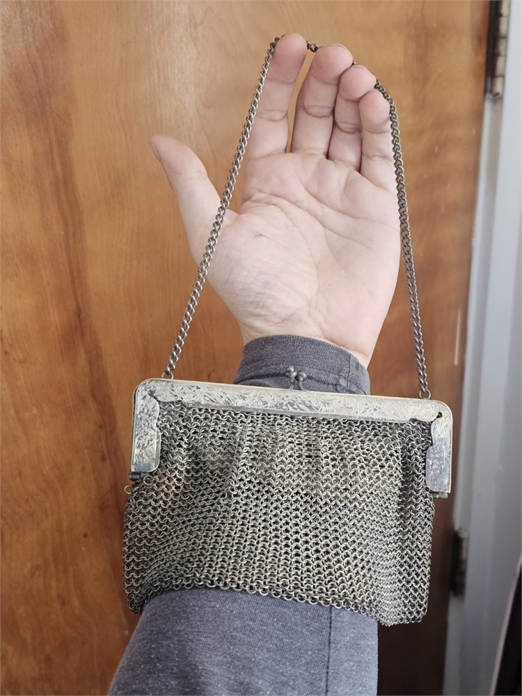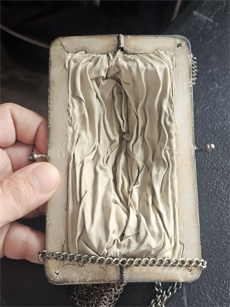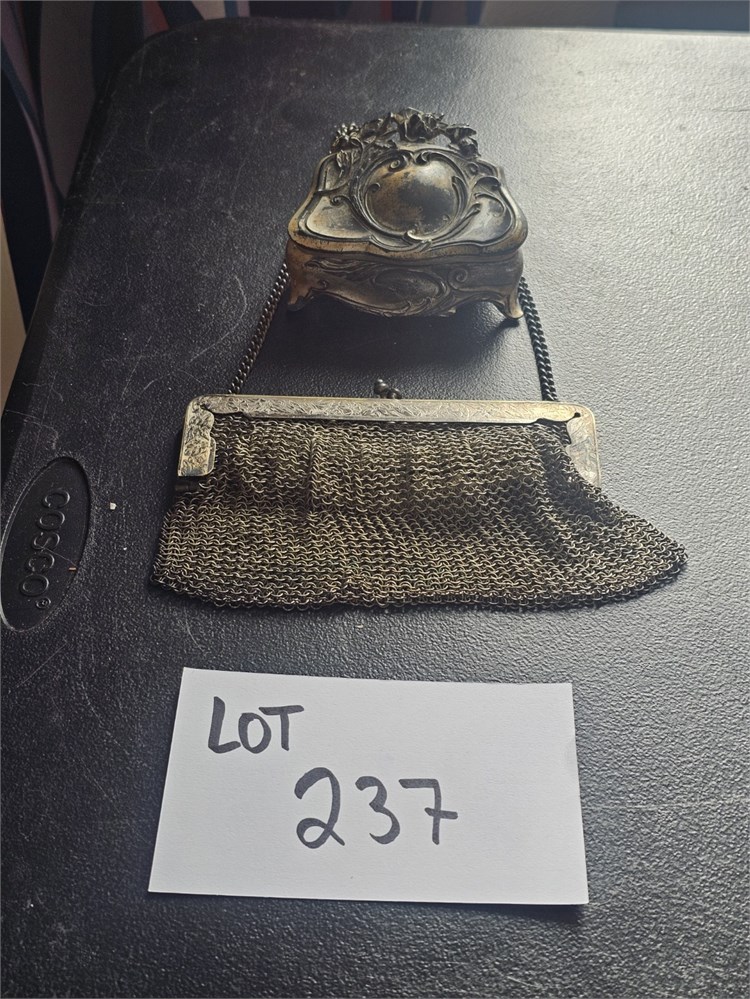 Vintage German Silver Purse & 1900s Vintage Silver Jewelry Trinket Box Marked  395