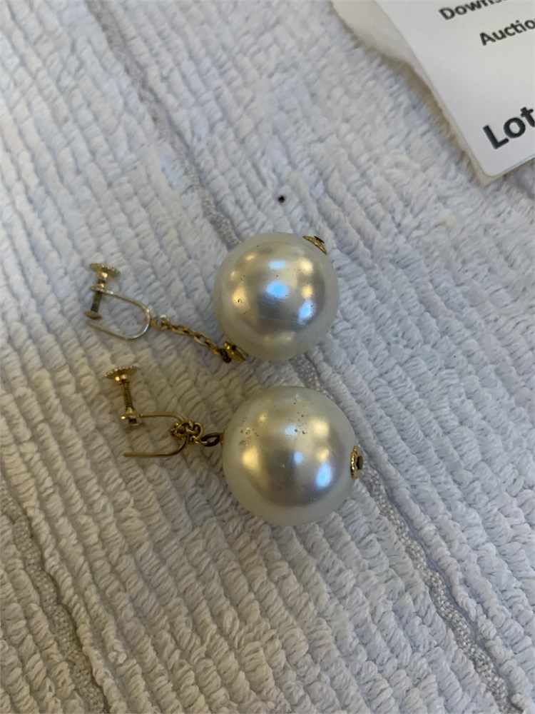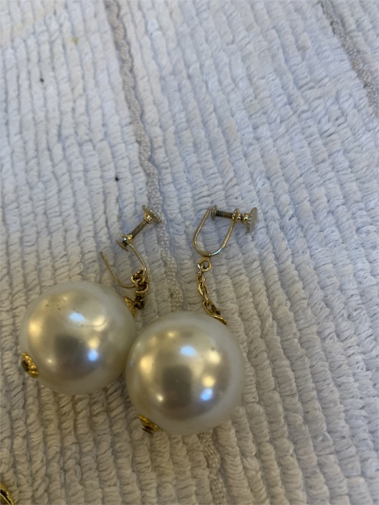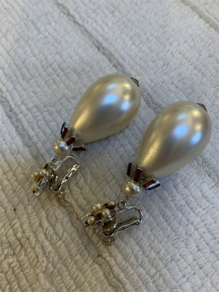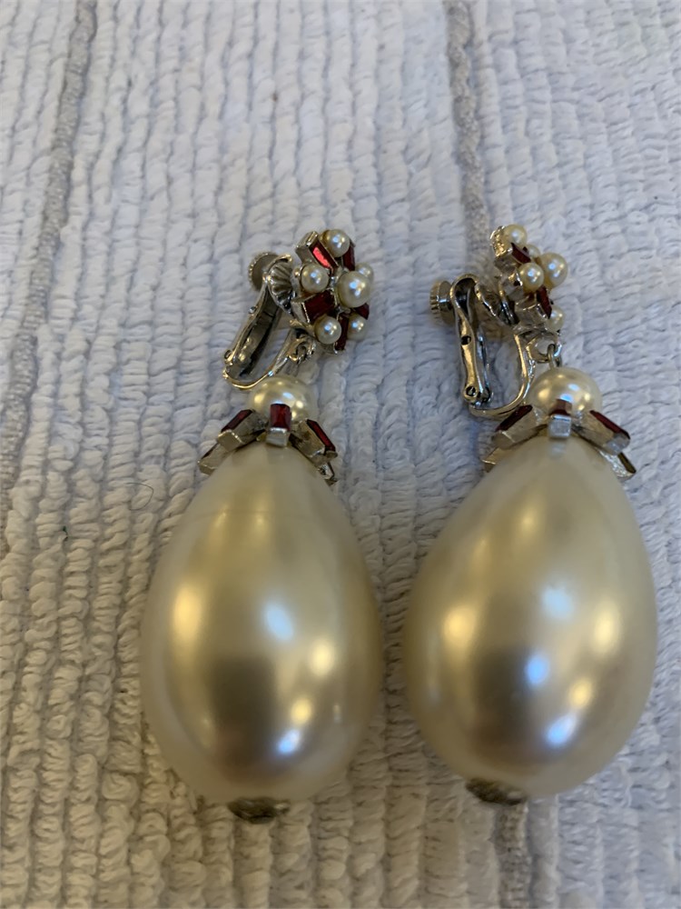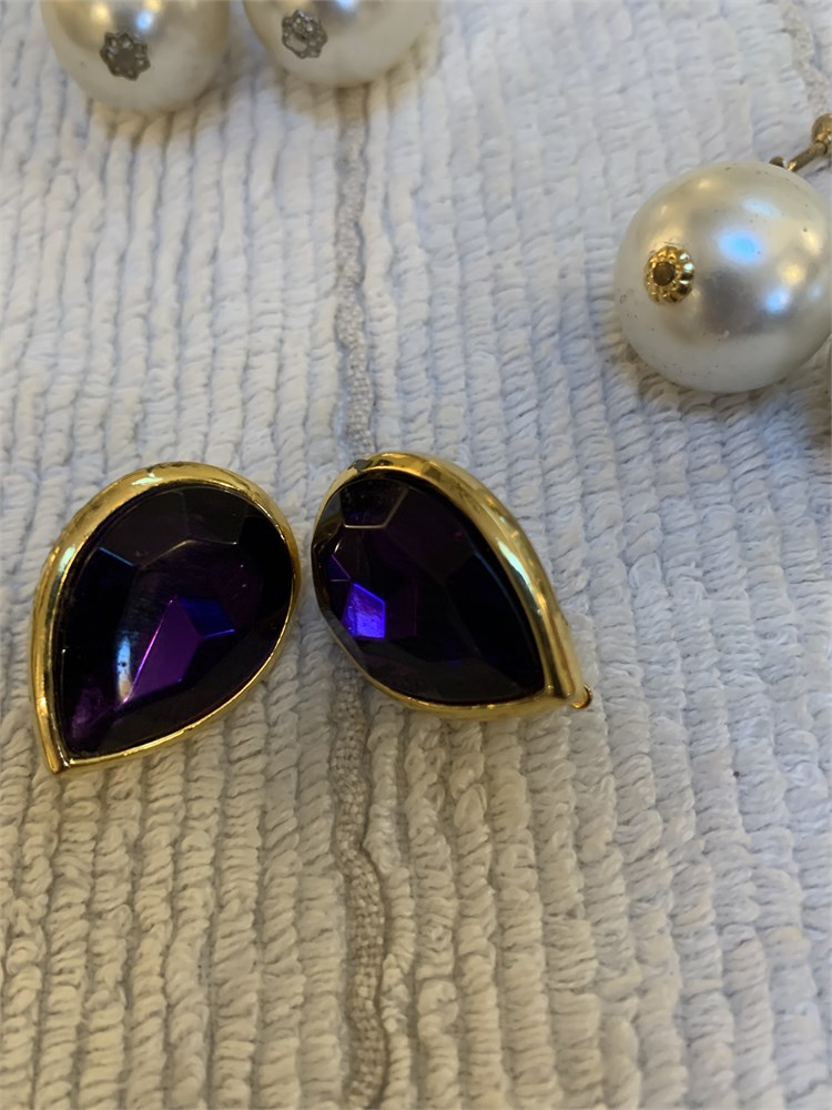 Trifari Gold-Tone Amethyst Rhinestone Teardrop Clip-Ons, Faux Pearl Screw Backs View Watchlist >