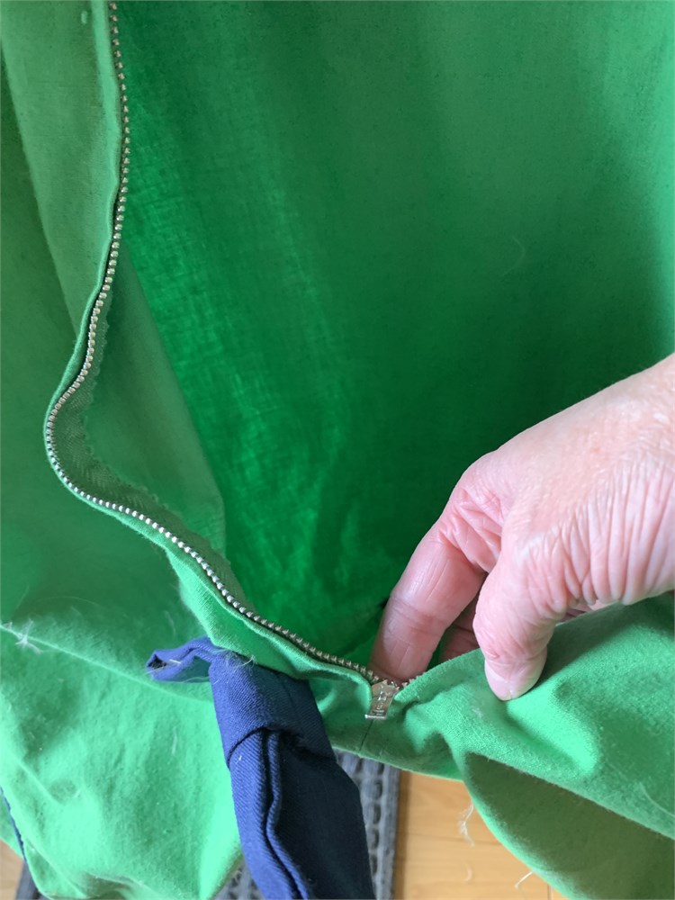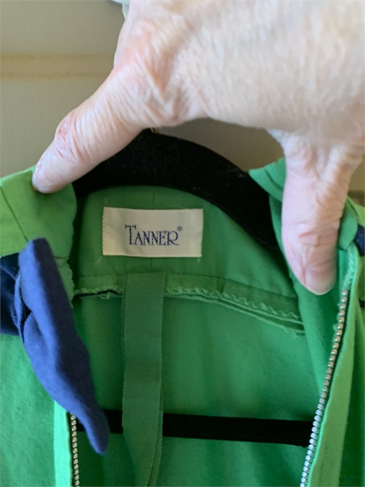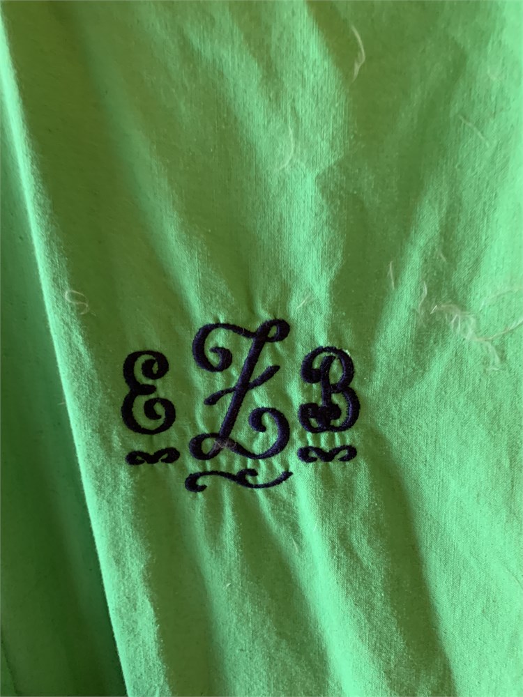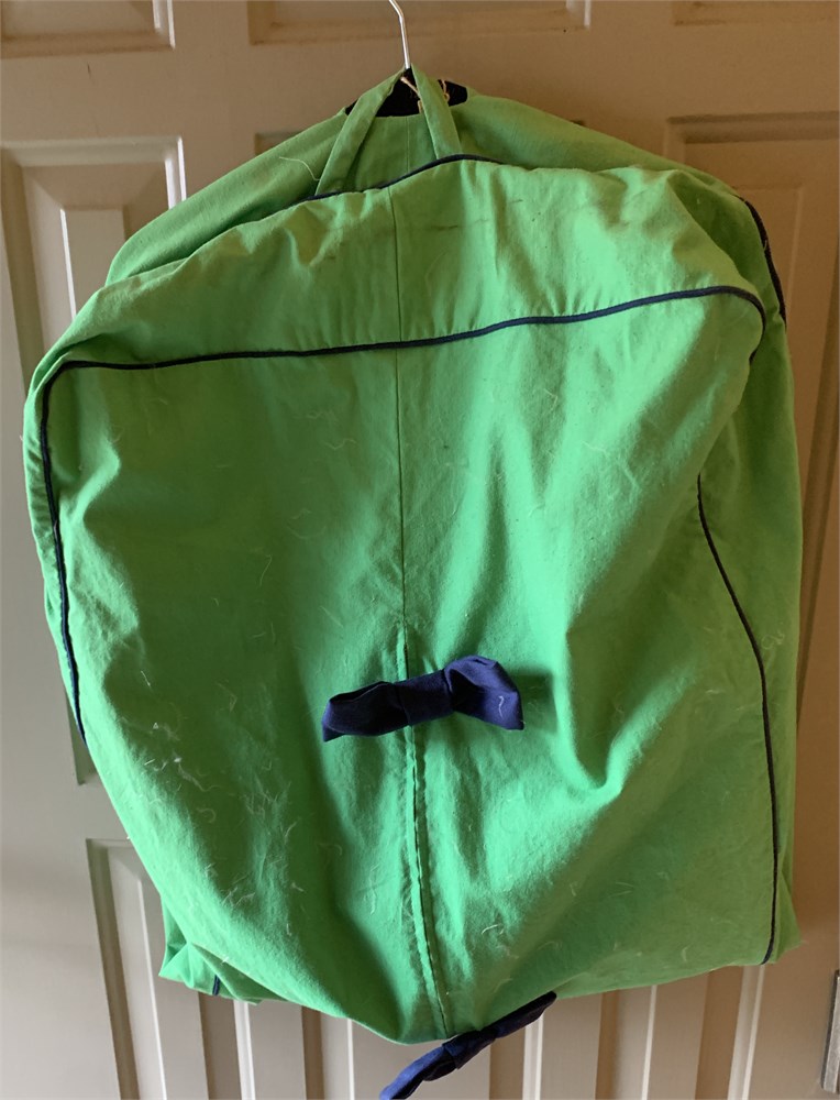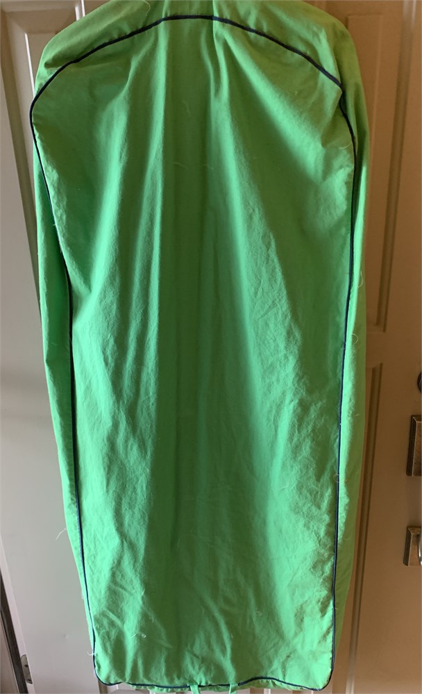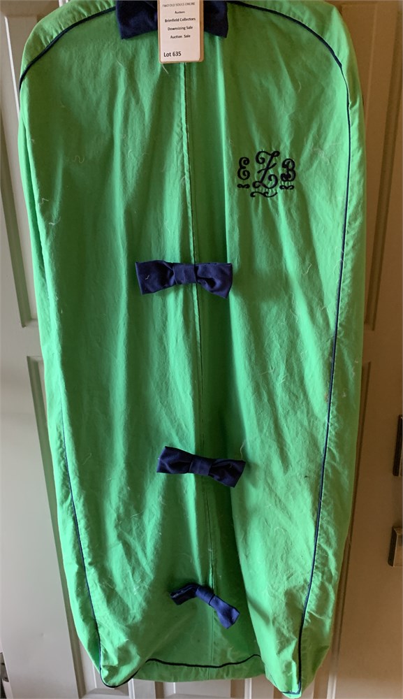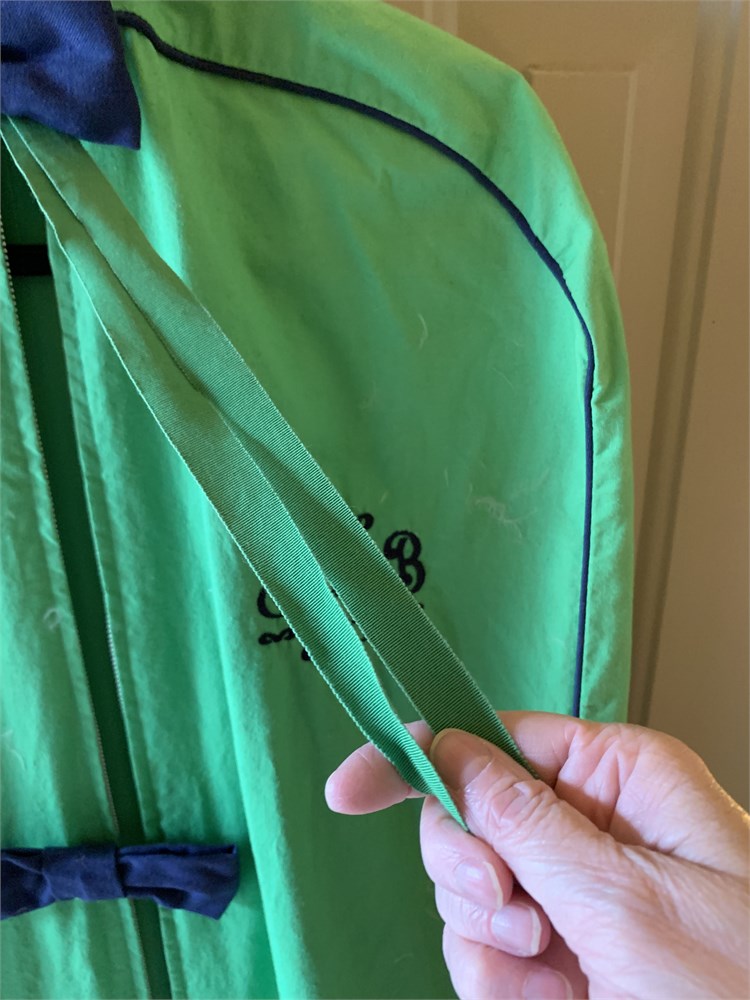 Vintage Tanner Green Zip Up Garment Bag W/Navy Blue Bows & Embroidered Monogram View Watchlist >