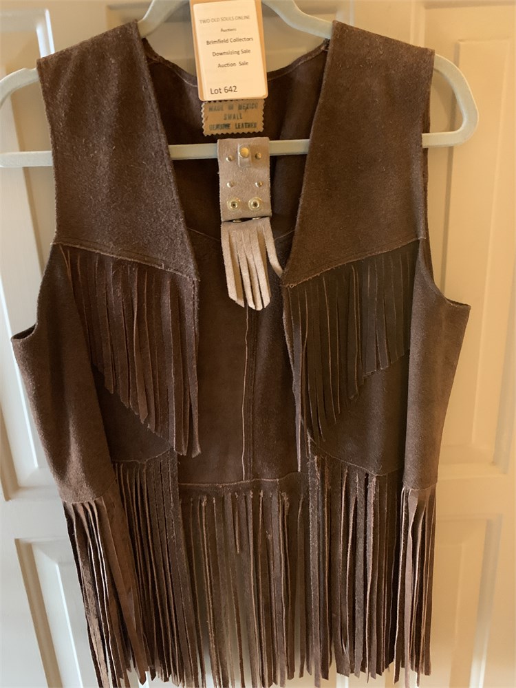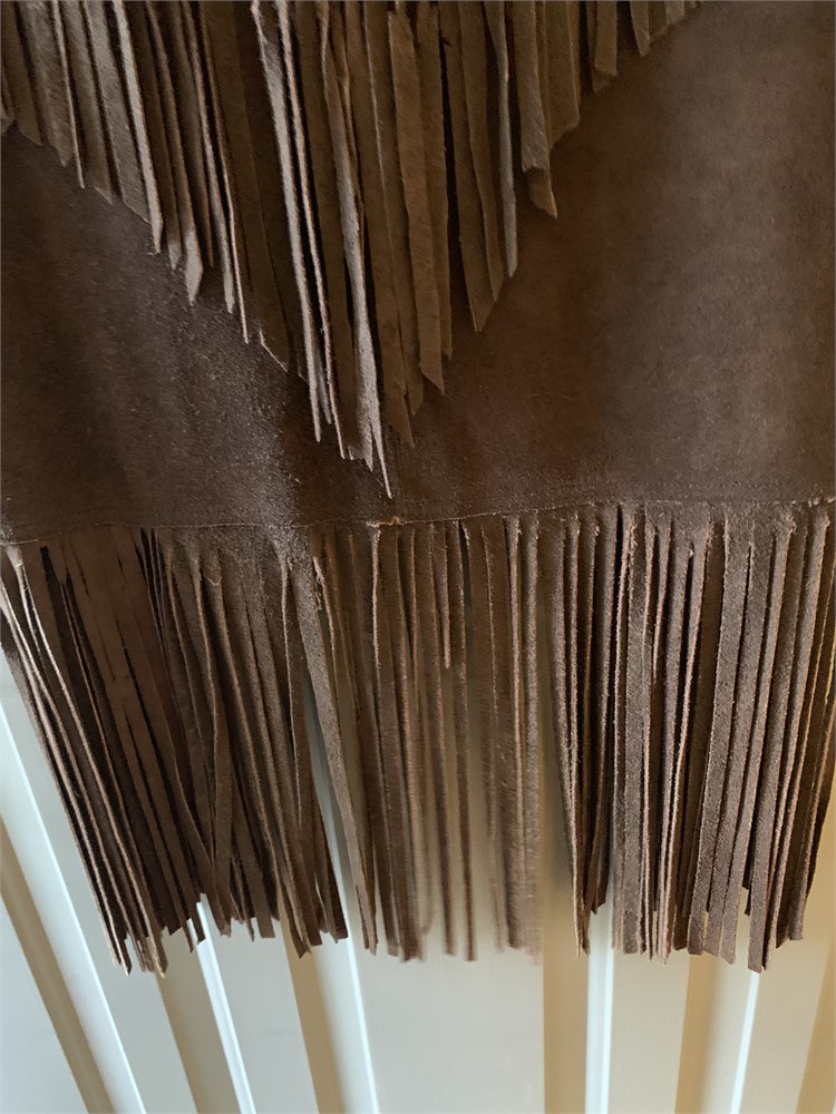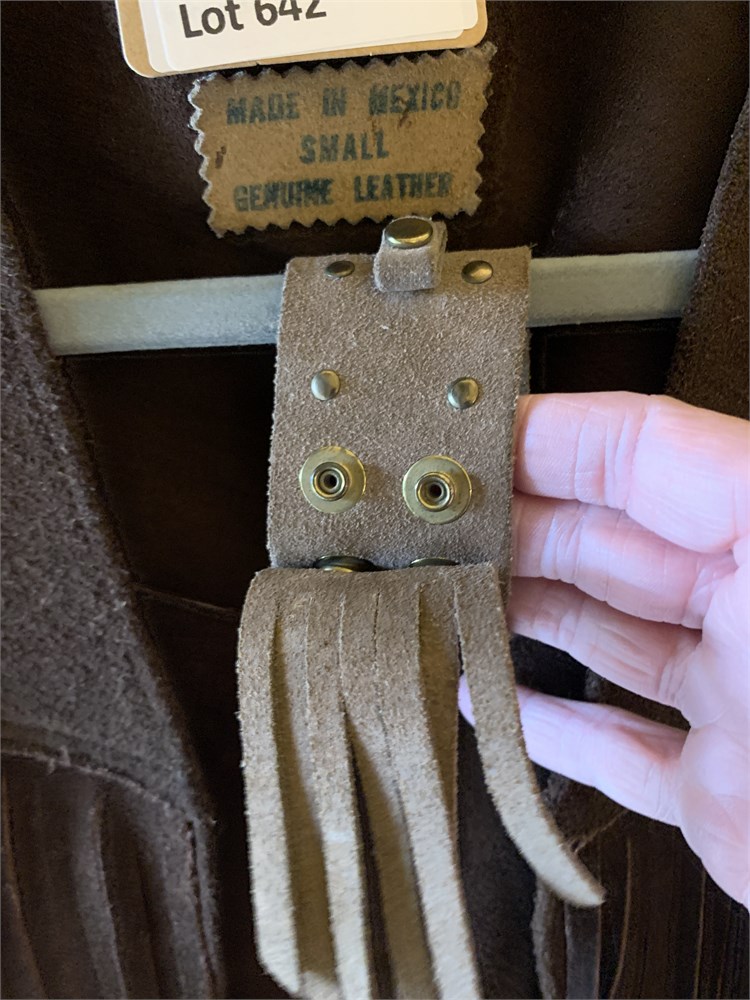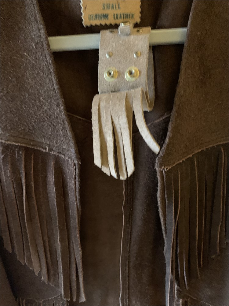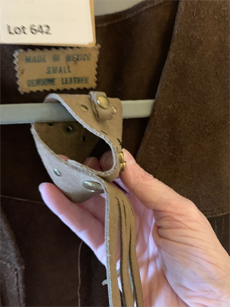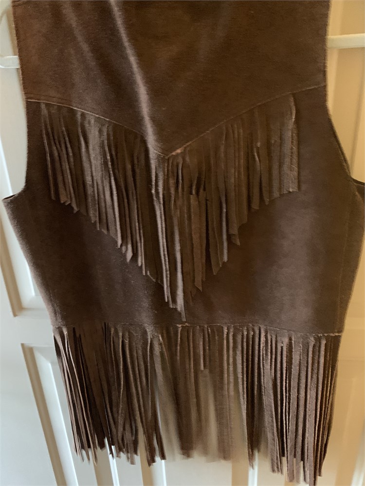 Vintage Dark Brown Genuine Leather V Fringe Vest Made In Mexico SIZE S View Watchlist >