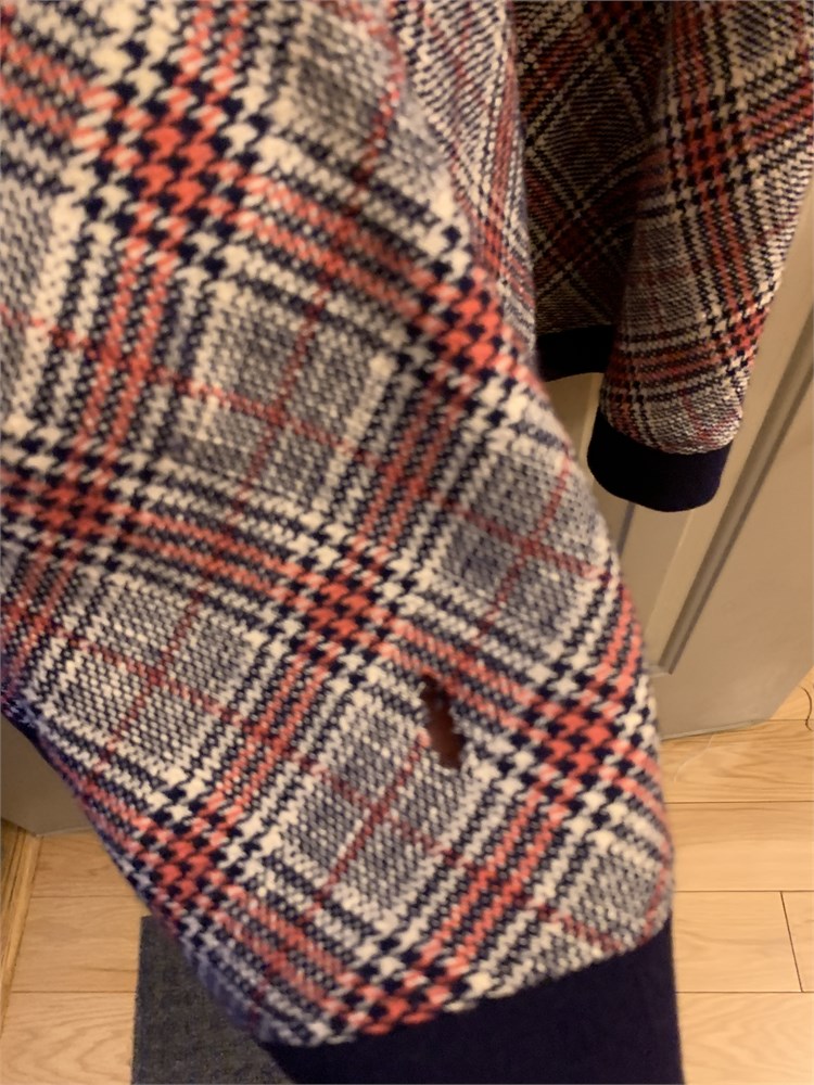 There is a hole in the dress (see photos). Most likely a size vintage medium/large (approximate).
