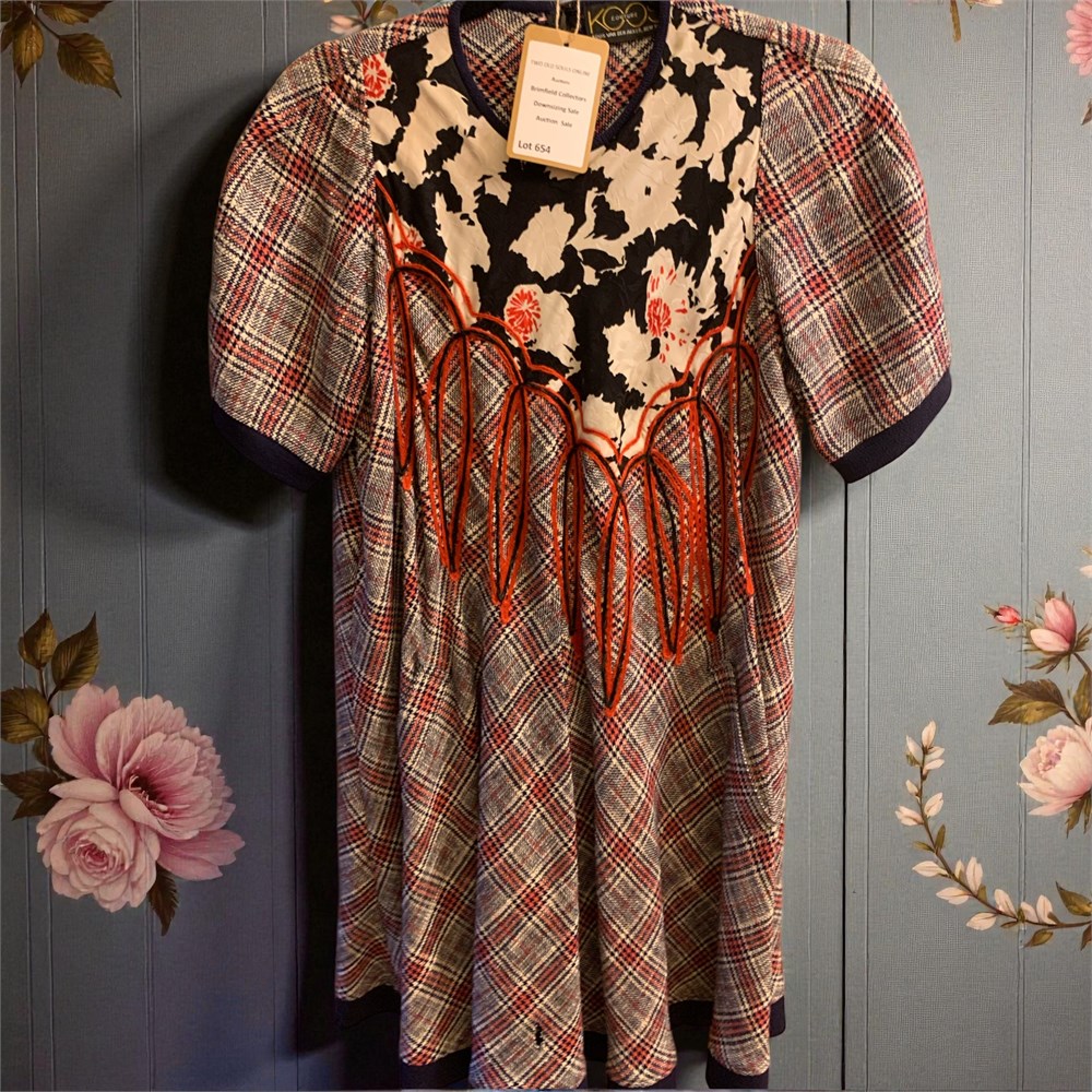 Koos van den Akke Couture Plaid/Patchwork V-Neck Wool T-Shirt Style Dress View Watchlist >