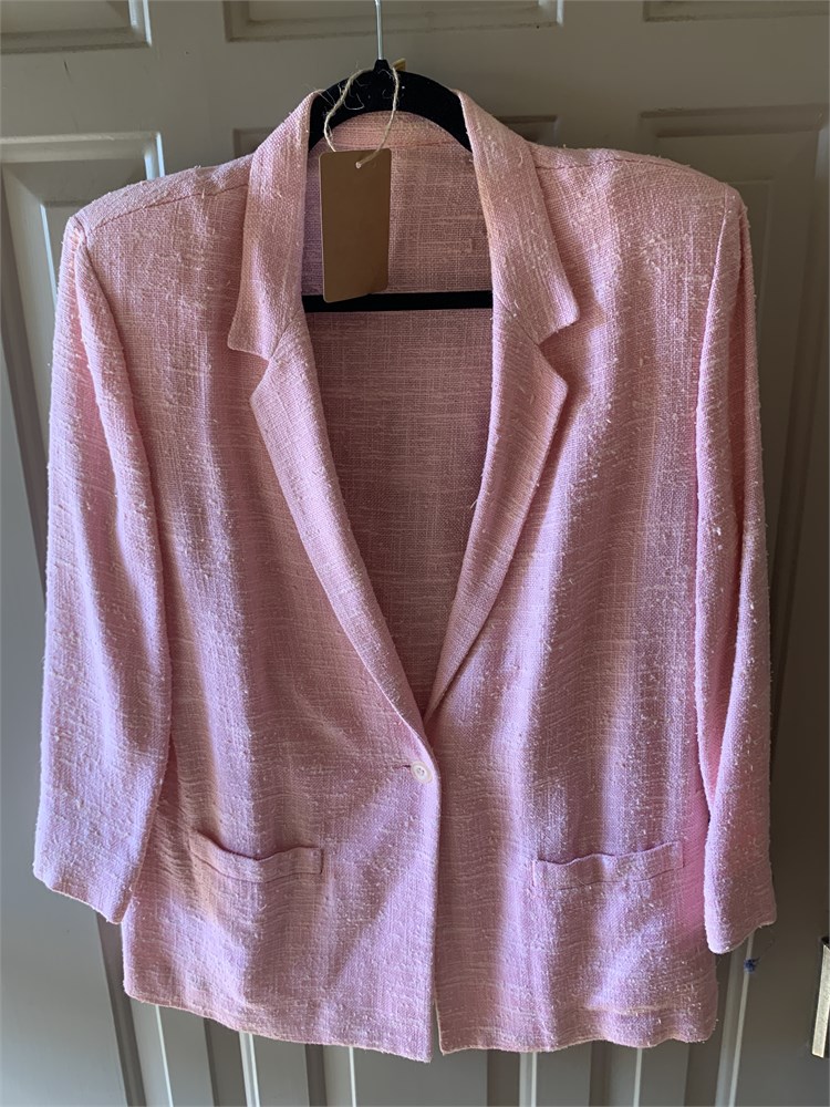 VGR Pink Linen Blend One-Button Blazer Jacket & Matching Pencil Skirt View Watchlist >