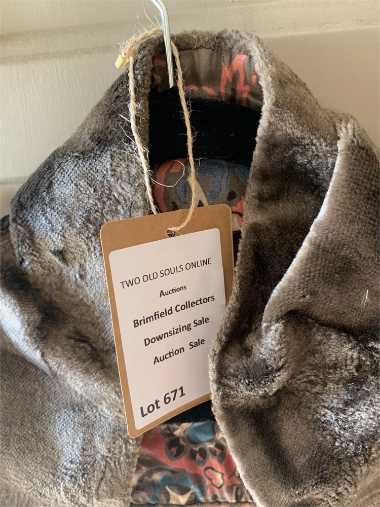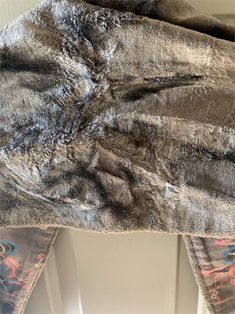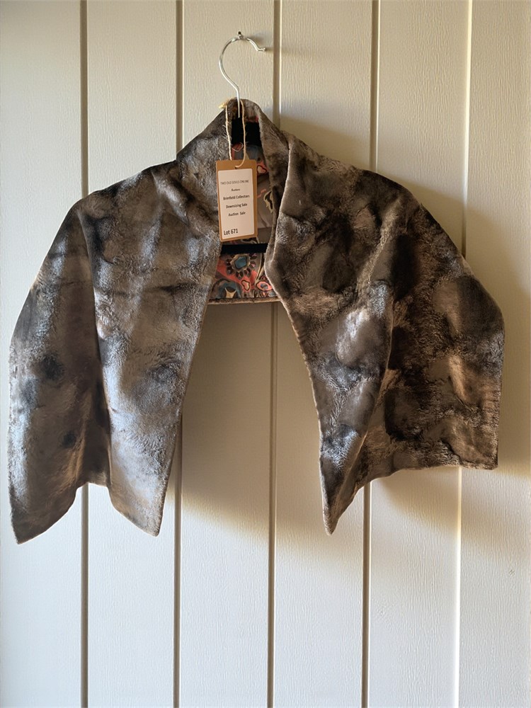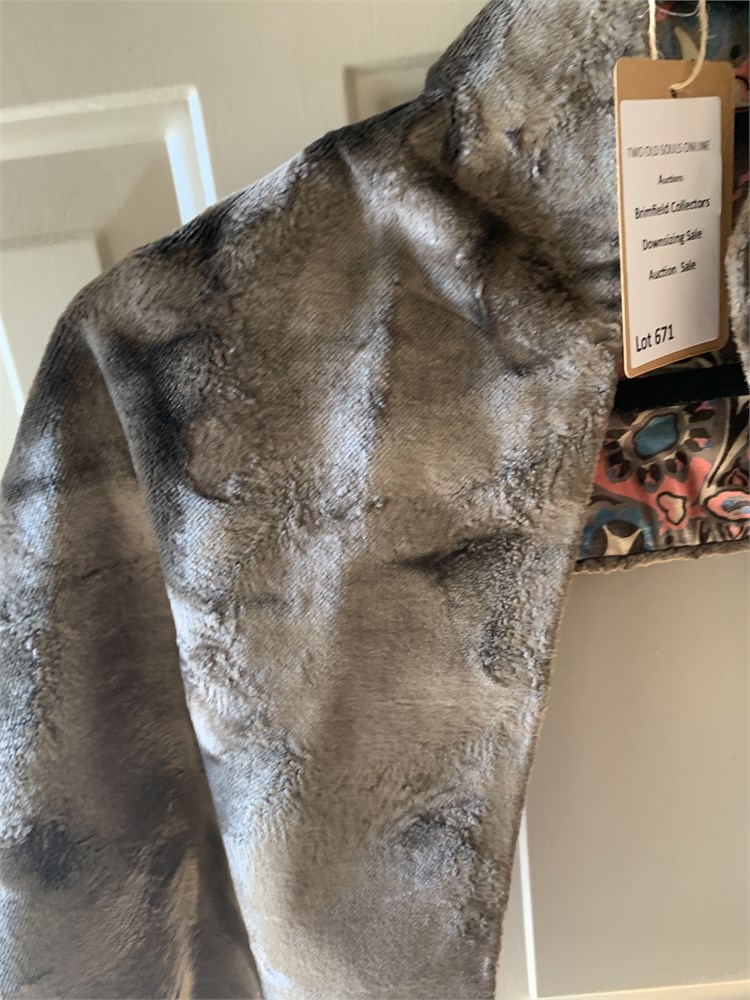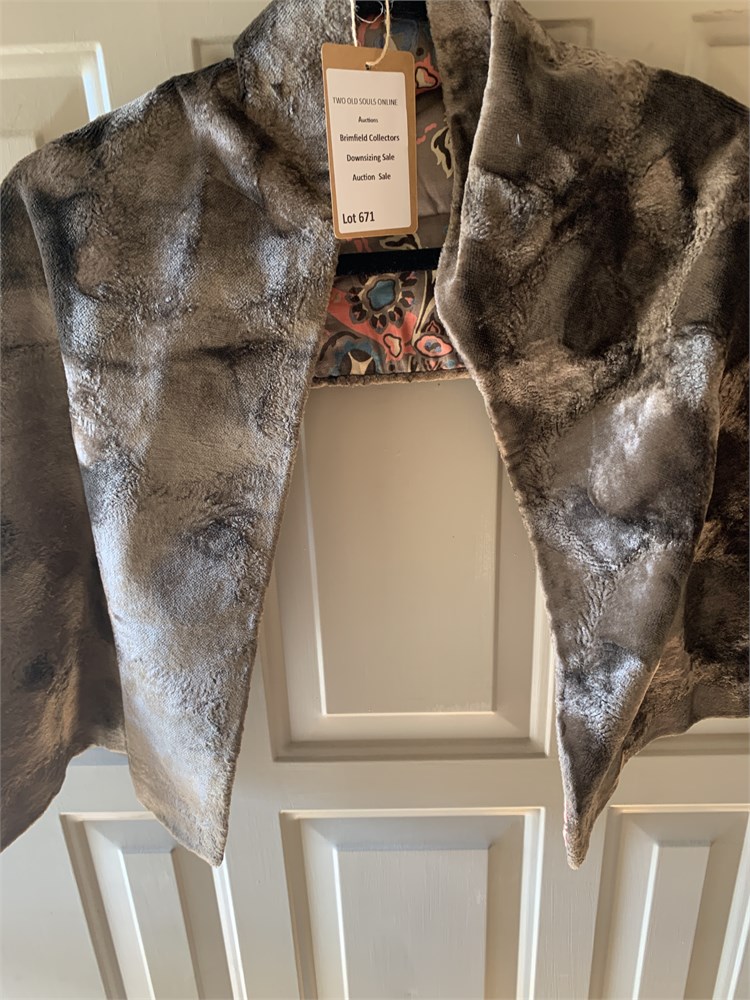Gray/Beige/Black Faux Fur Shaw/Bolero W/Floral Paisley Block Interior View Watchlist >