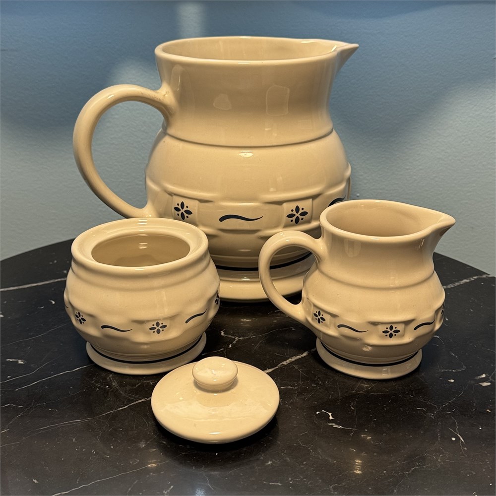Longaberger Pottery Pitcher with Cream & Sugar Dishes