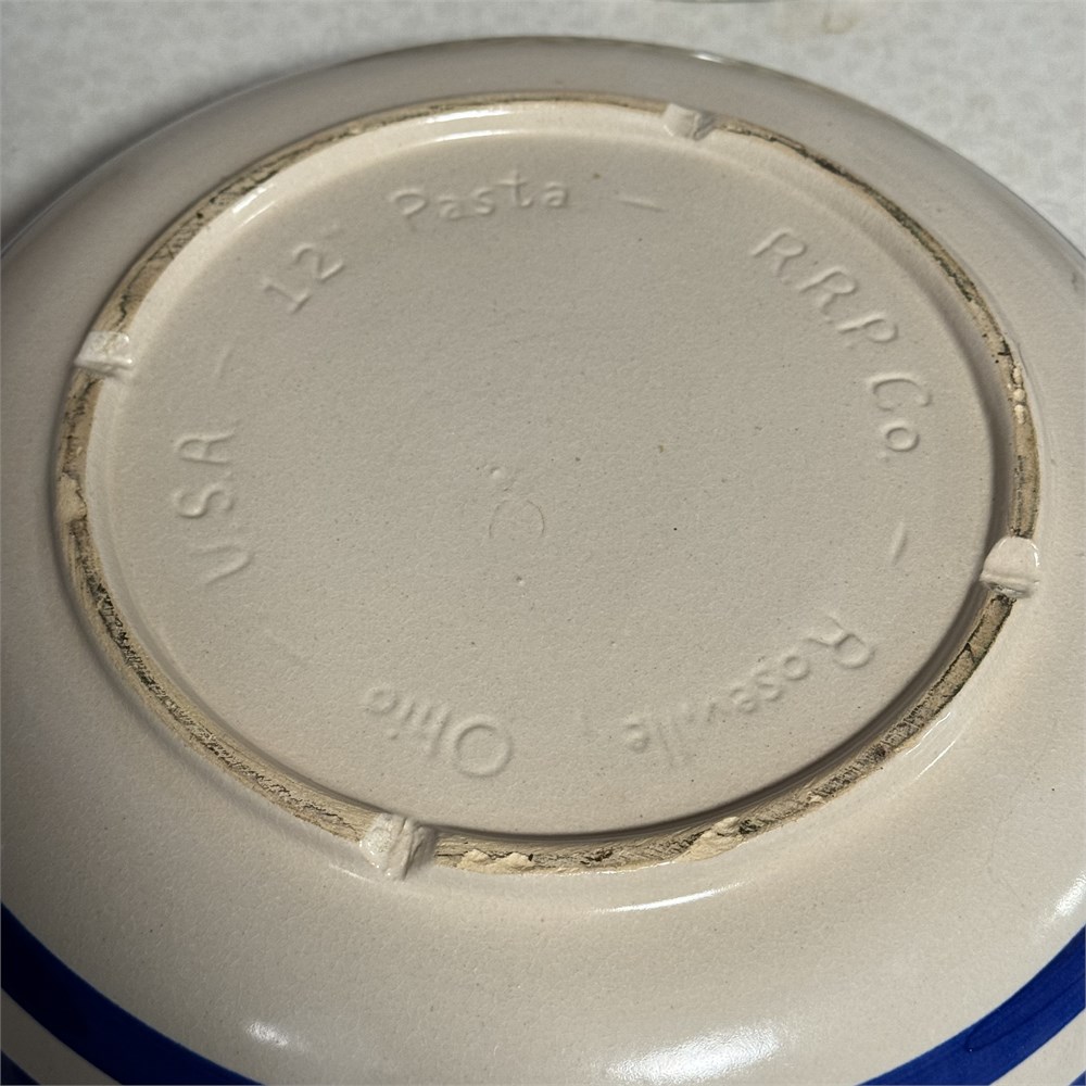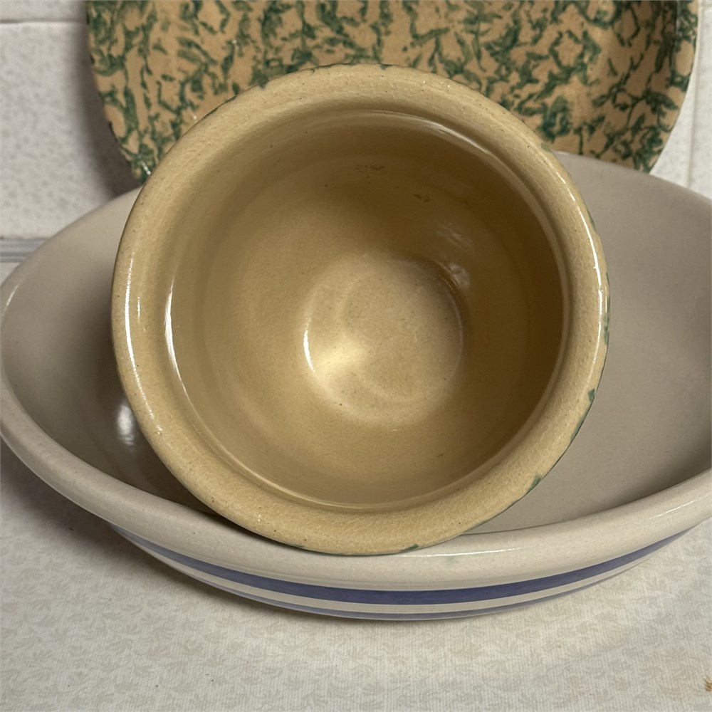 RRP Roseville Pasta Bowl and Green Spongeware Pieces