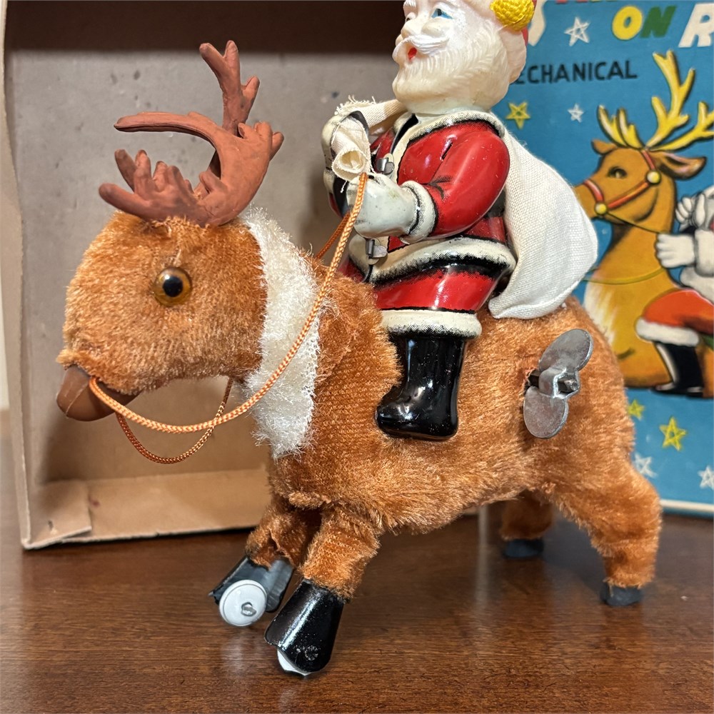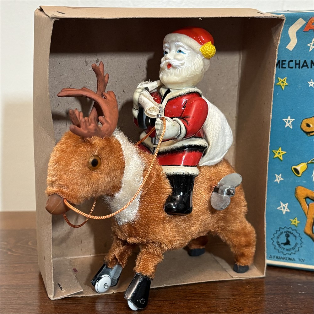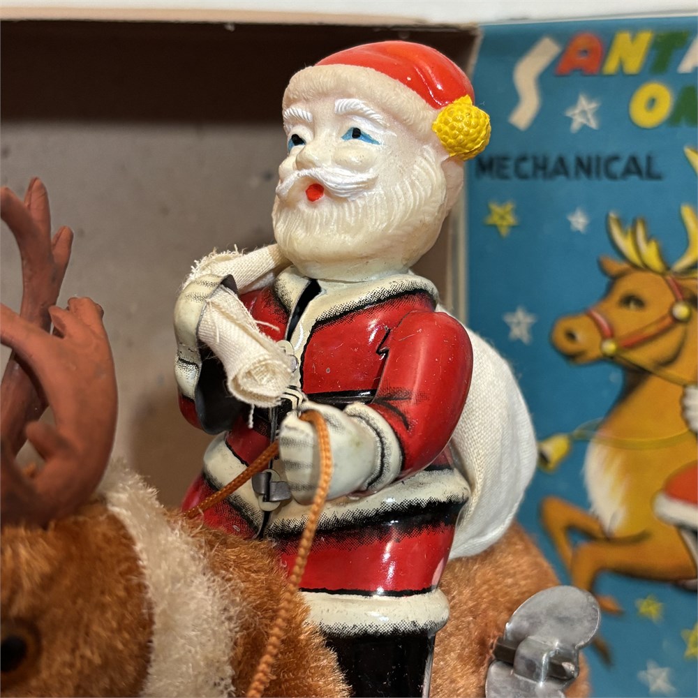 Vintage Frankoma Santa on Reindeer Mechanical Tin Litho Wind-Up Toy View Watchlist >