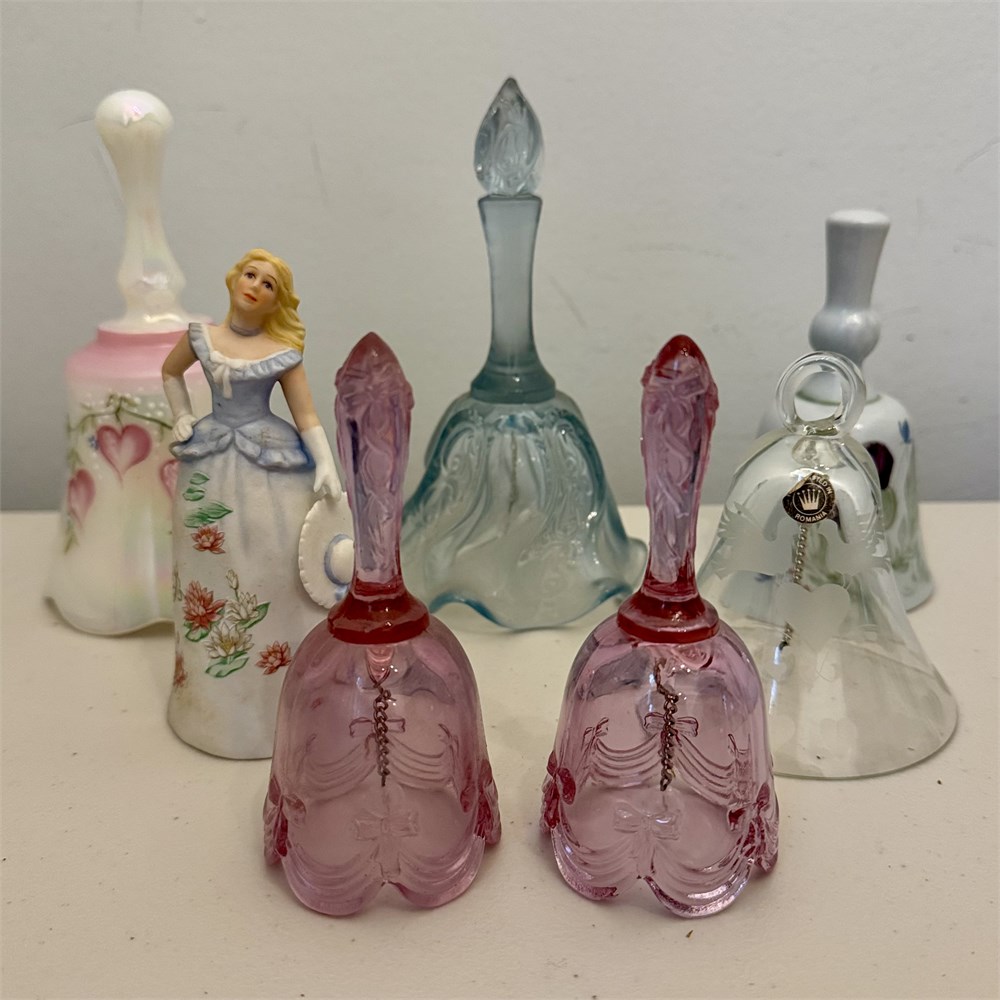Lot of 7 Collectible Bells w/ Fenton Art Glass, Porcelain & More