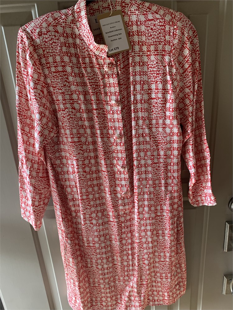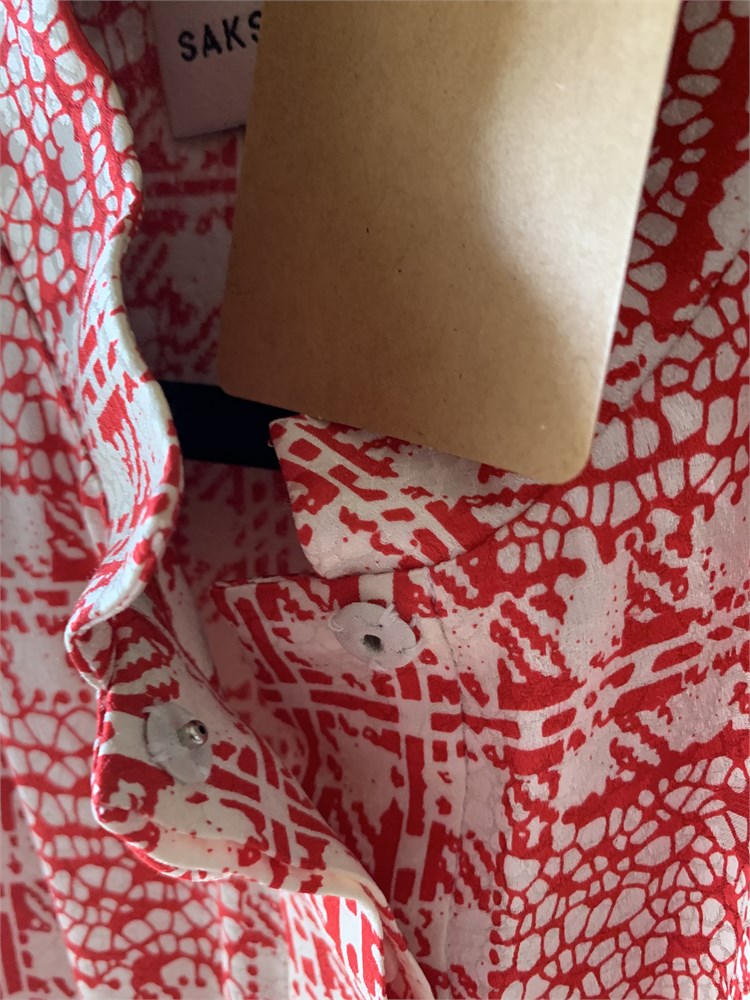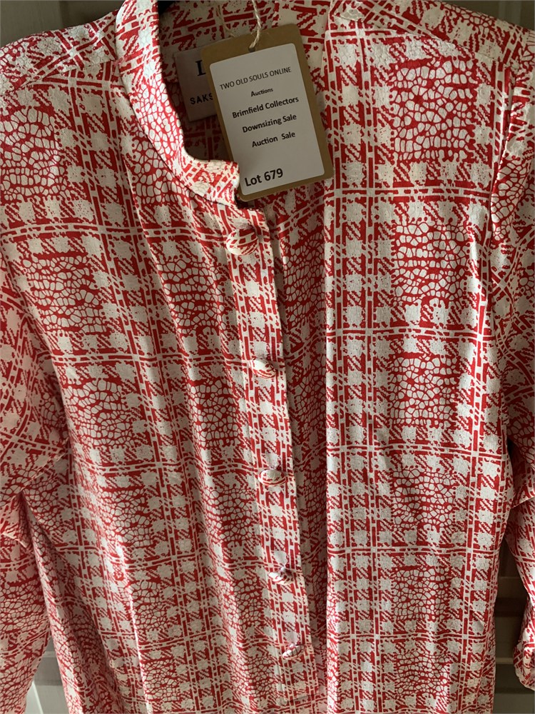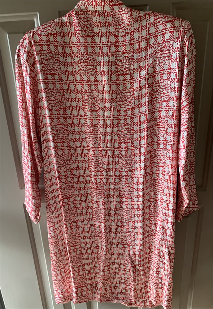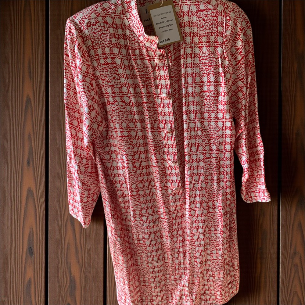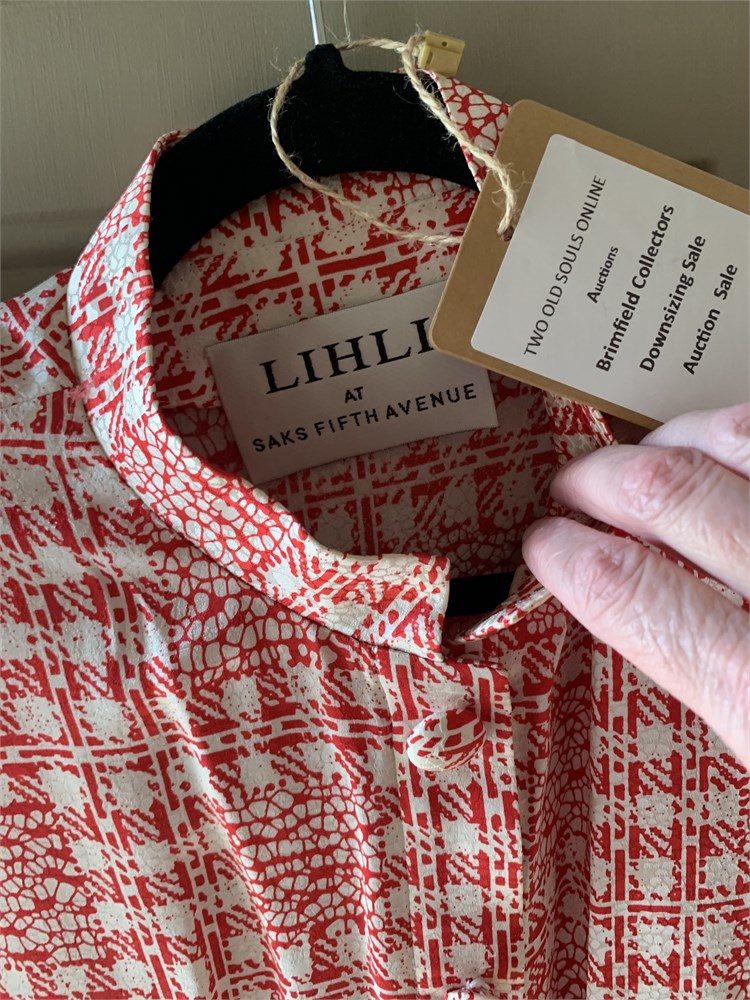 LIHLI Saks Fifth Avenue Red & Cream Patterned Button Down Tunic Blouse View Watchlist >