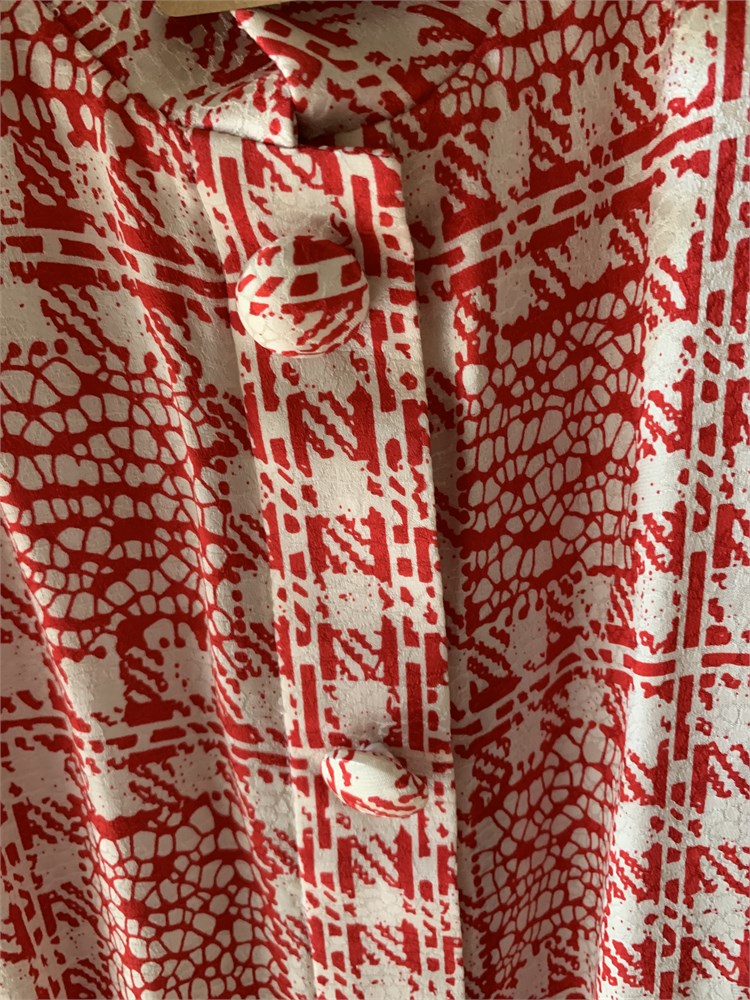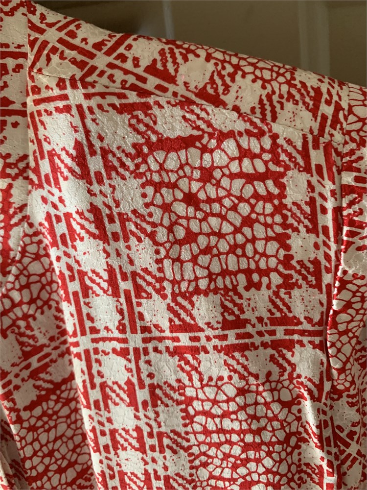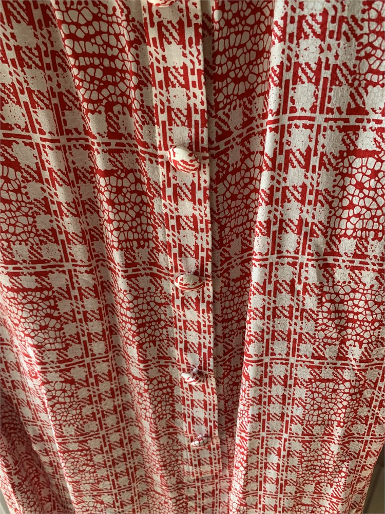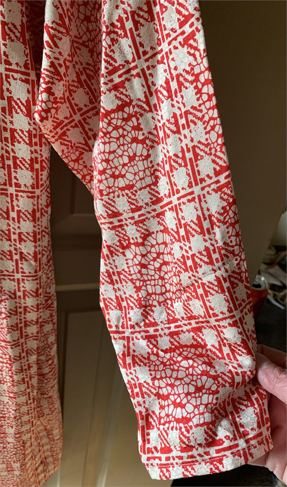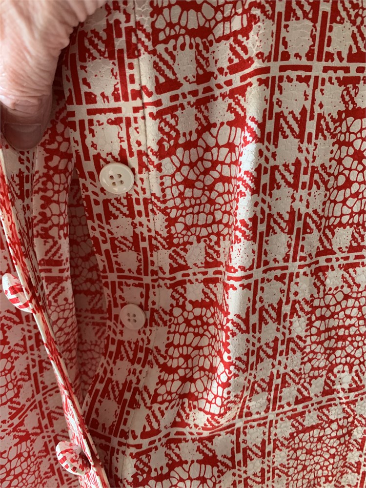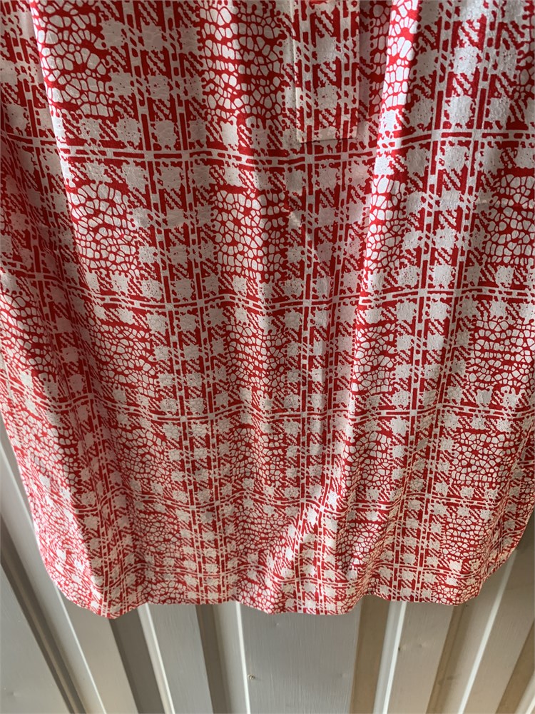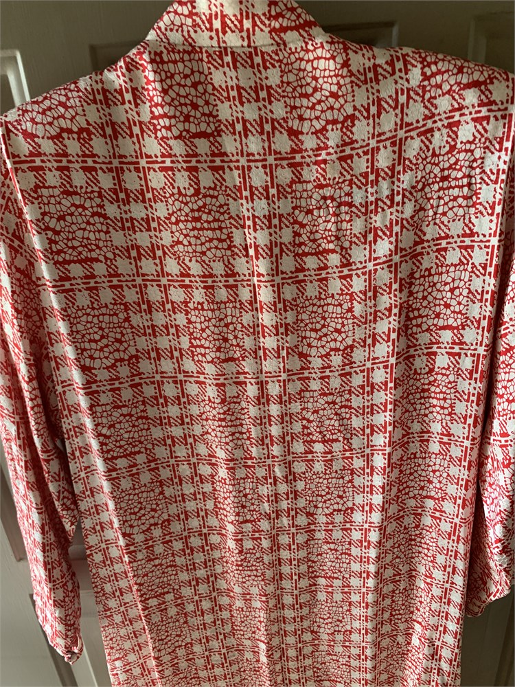 LIHLI Saks Fifth Avenue Red & Cream Patterned Button Down Tunic Blouse View Watchlist >