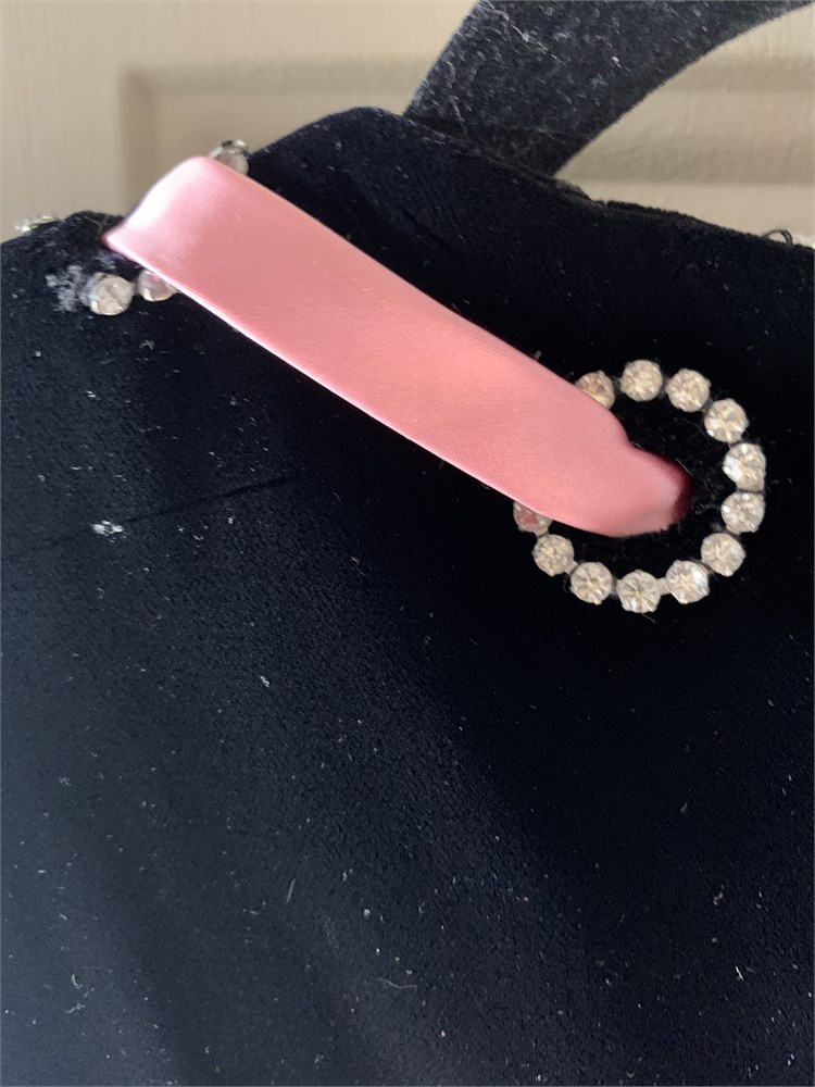 Beautiful Pink Satin Ribbon Lacing & Bow, Rhinestone Accents, Zipper Back