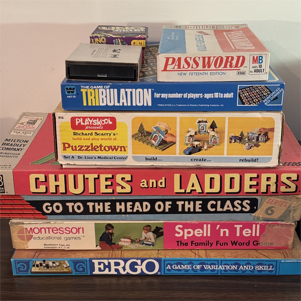 Collection of Vintage Board Games w/ Chutes and Ladders and More