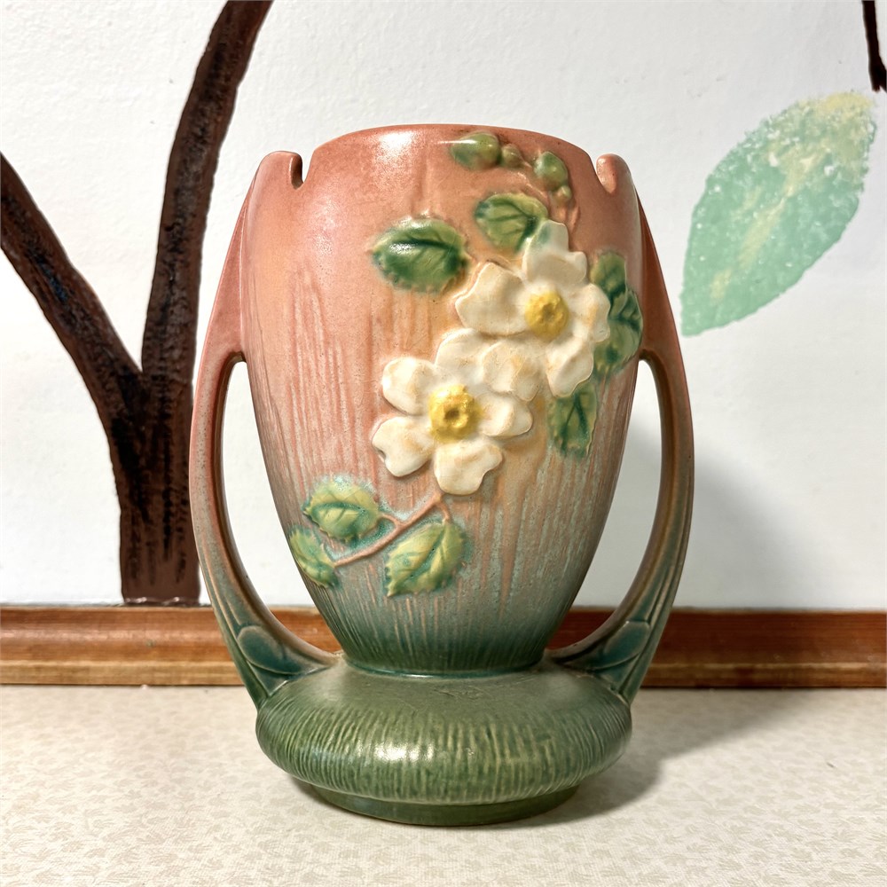Roseville Pottery White Rose Vase