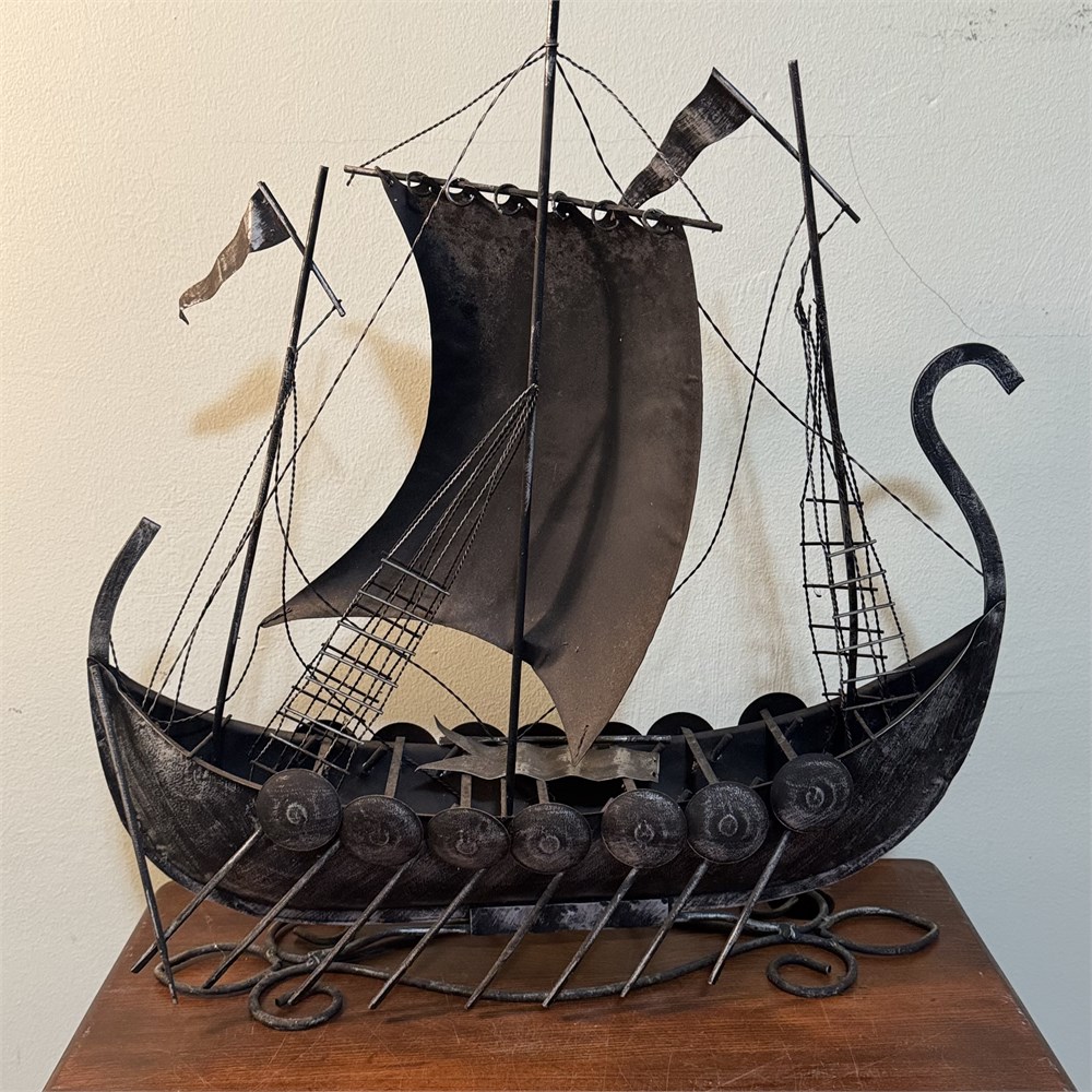Large Tin Metal Viking Ship - 23" x 25" View Watchlist >