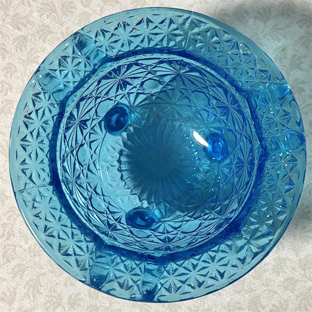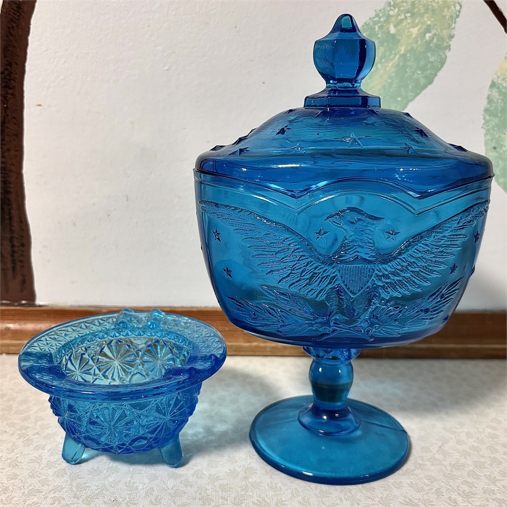 Aqua Blue Covered Glass Candy Dish & Small LE Smith Bowl