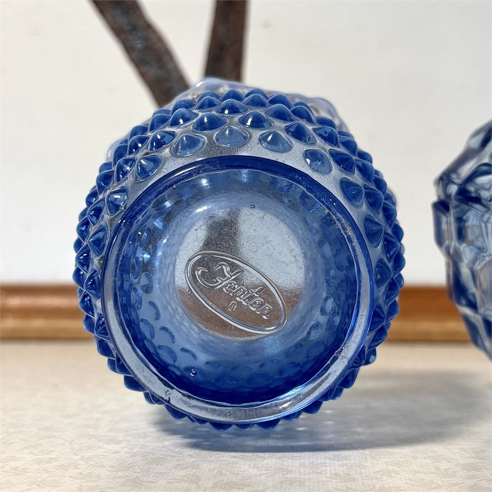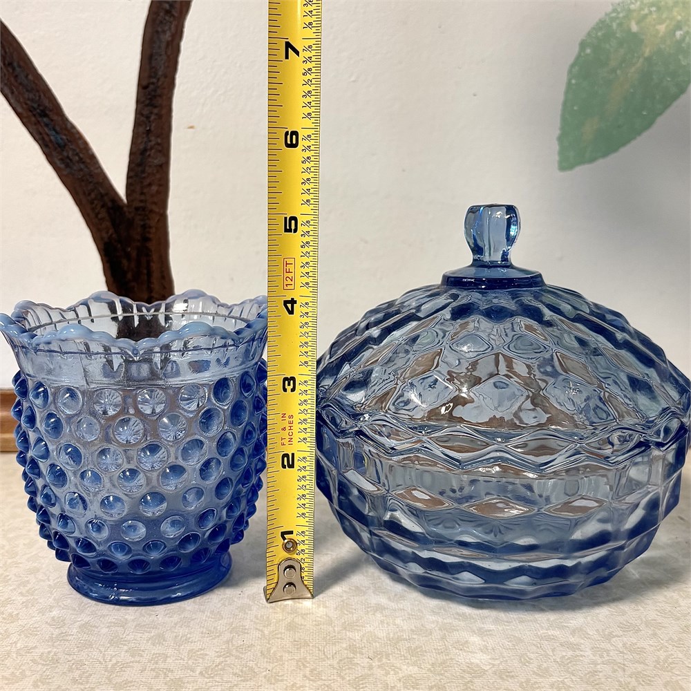 Cornflower Blue Covered Art Glass Candy Dish and Small Fenton Bud Vase