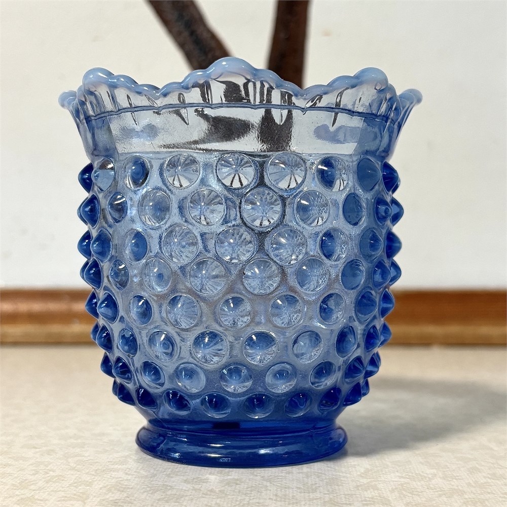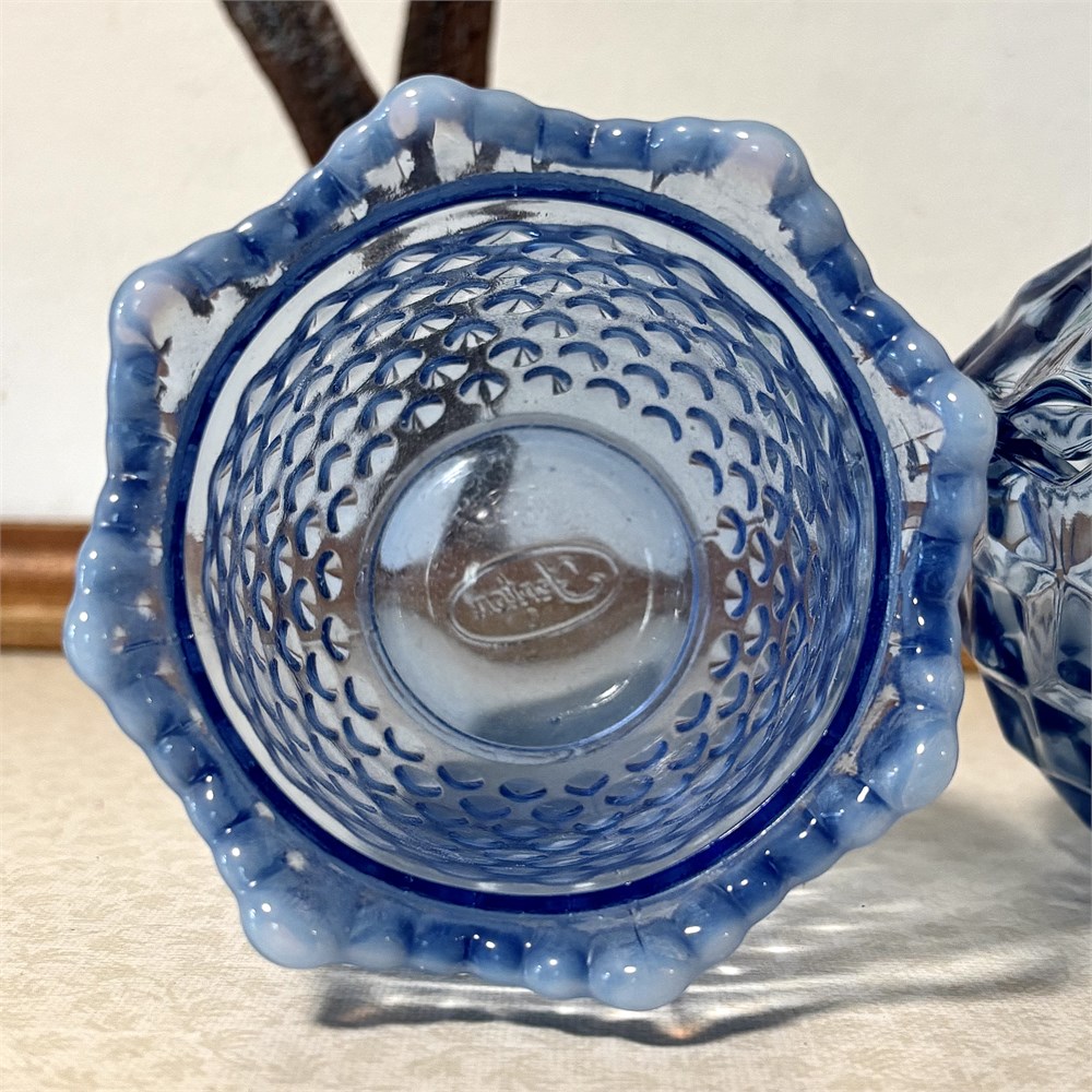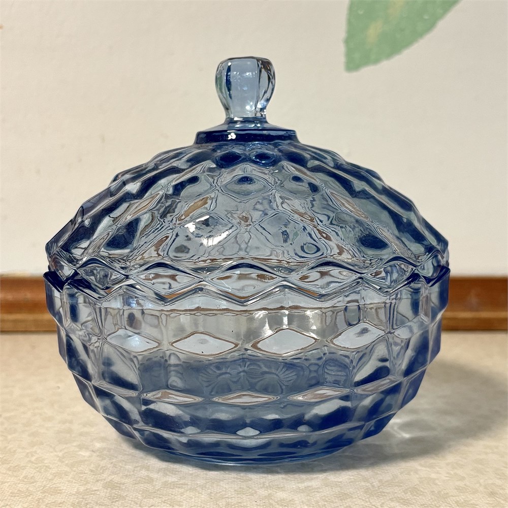 Cornflower Blue Covered Art Glass Candy Dish and Small Fenton Bud Vase View Watchlist >