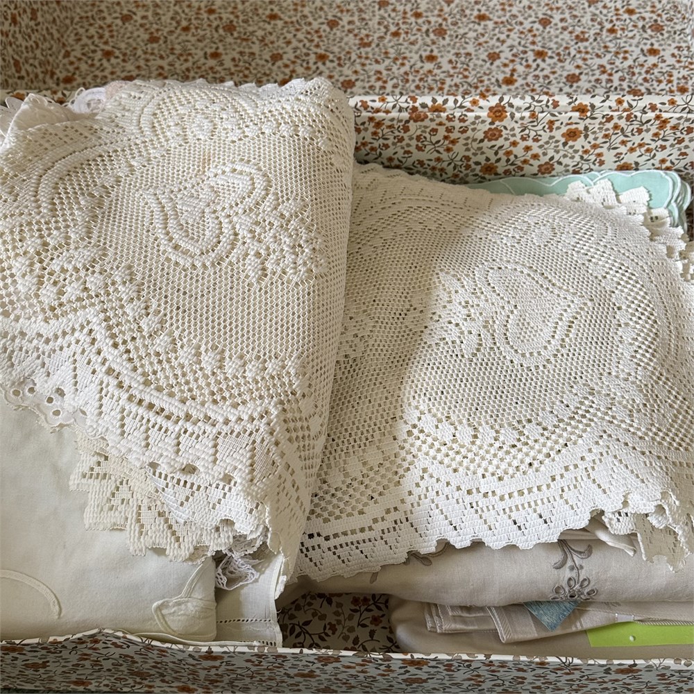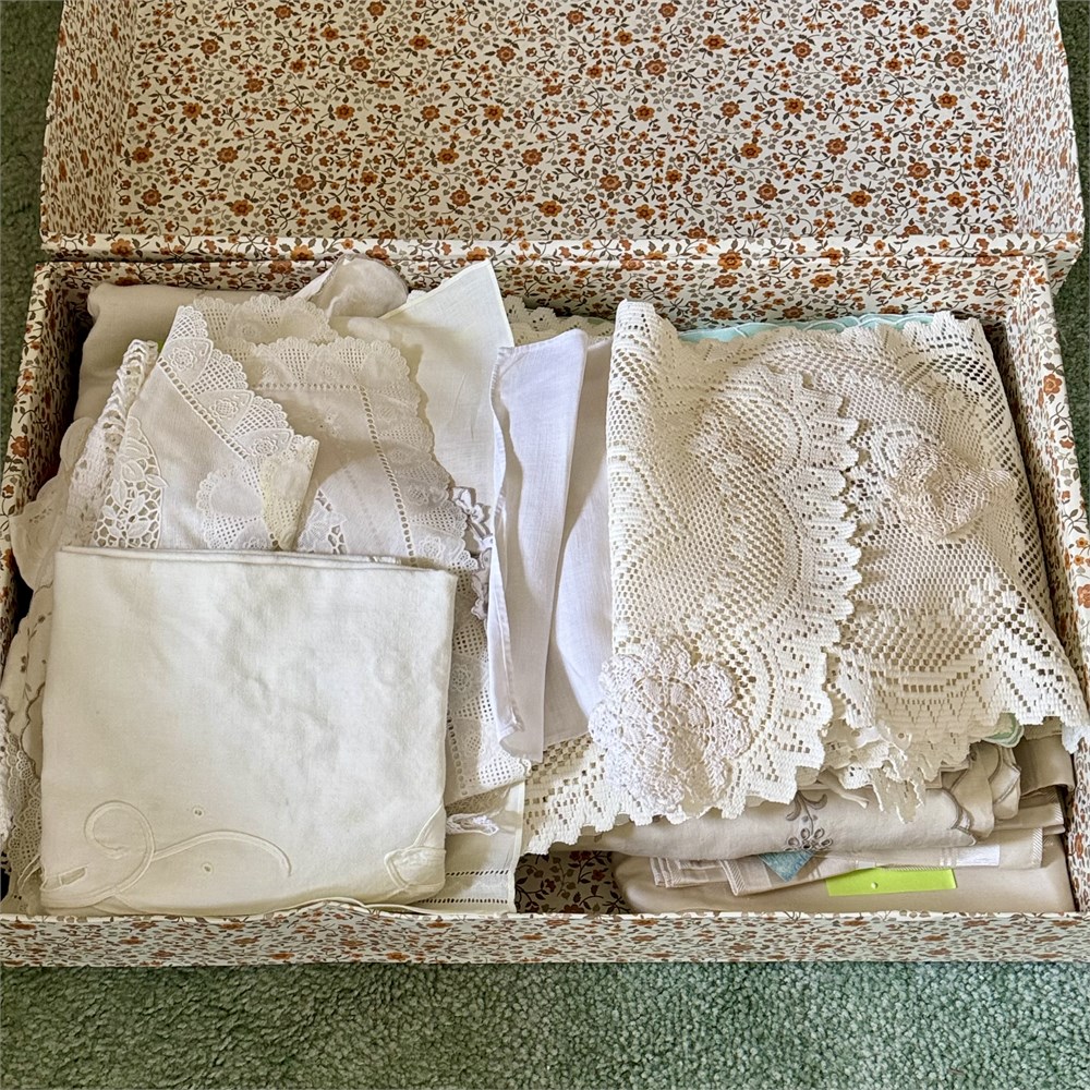Large Box of Unsorted Vintage Table Linens View Watchlist >