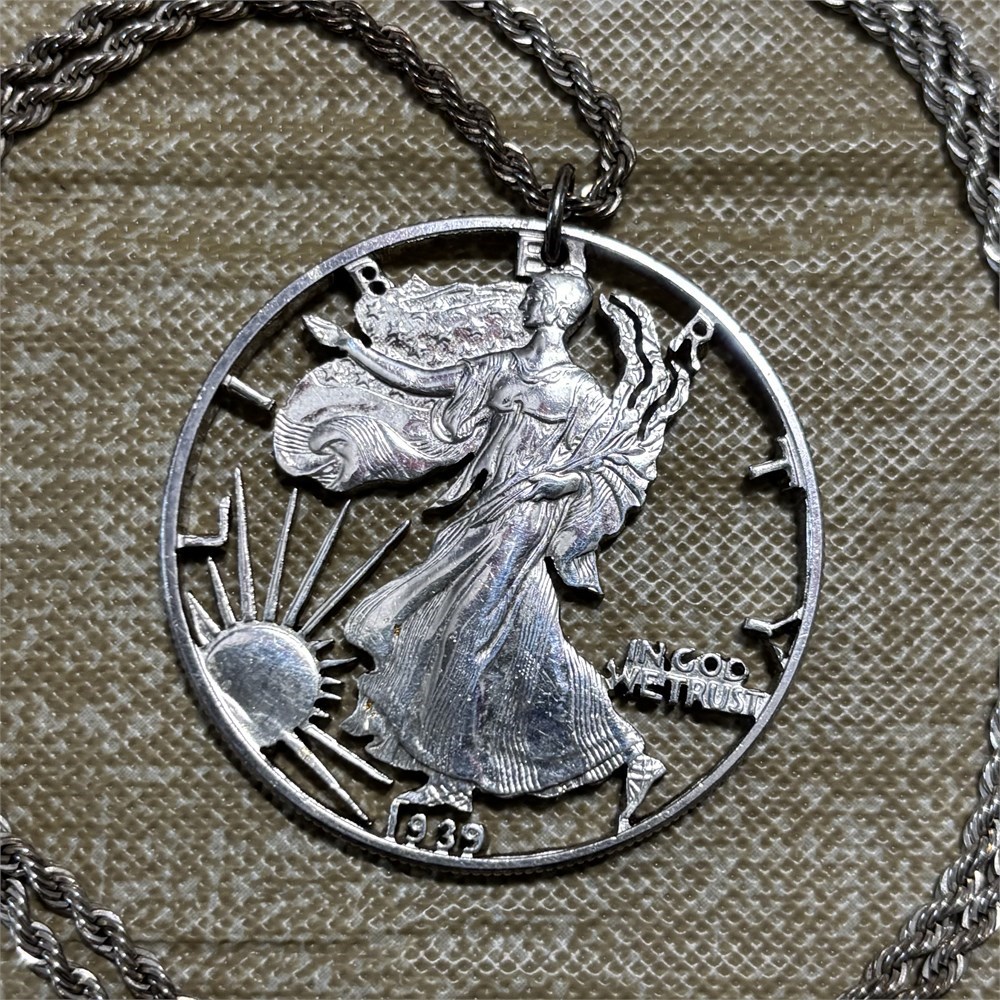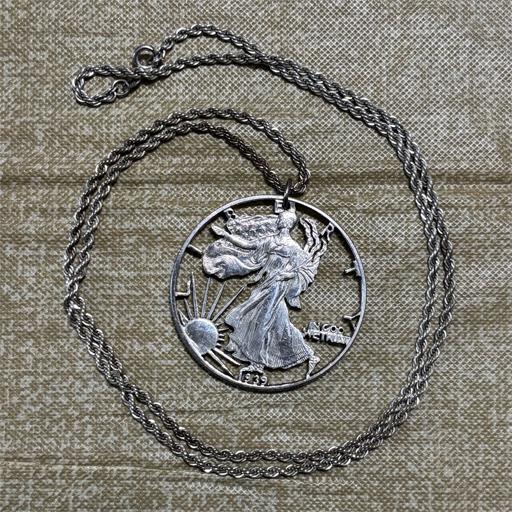 American Silver Walking Liberty Half Dollar Coin Necklace