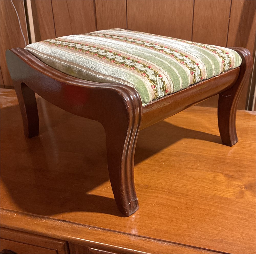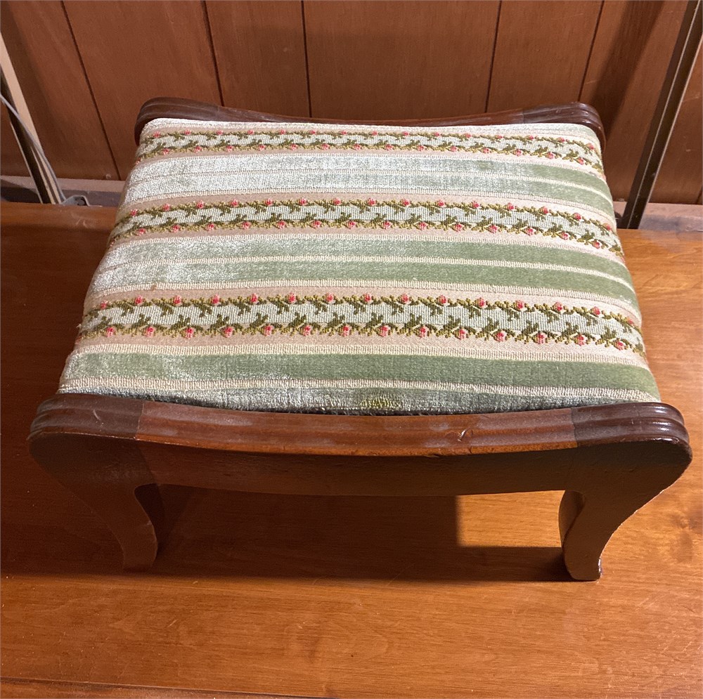 Antique Wood Frame Footstool - 15.5 x 13 x 8"T