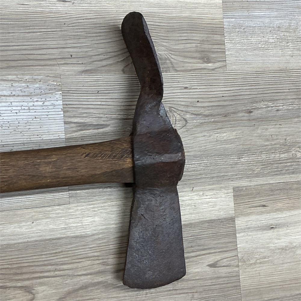 Antique Forged Iron Mattock Axe Head Grub Hoe Adze Tool View Watchlist >
