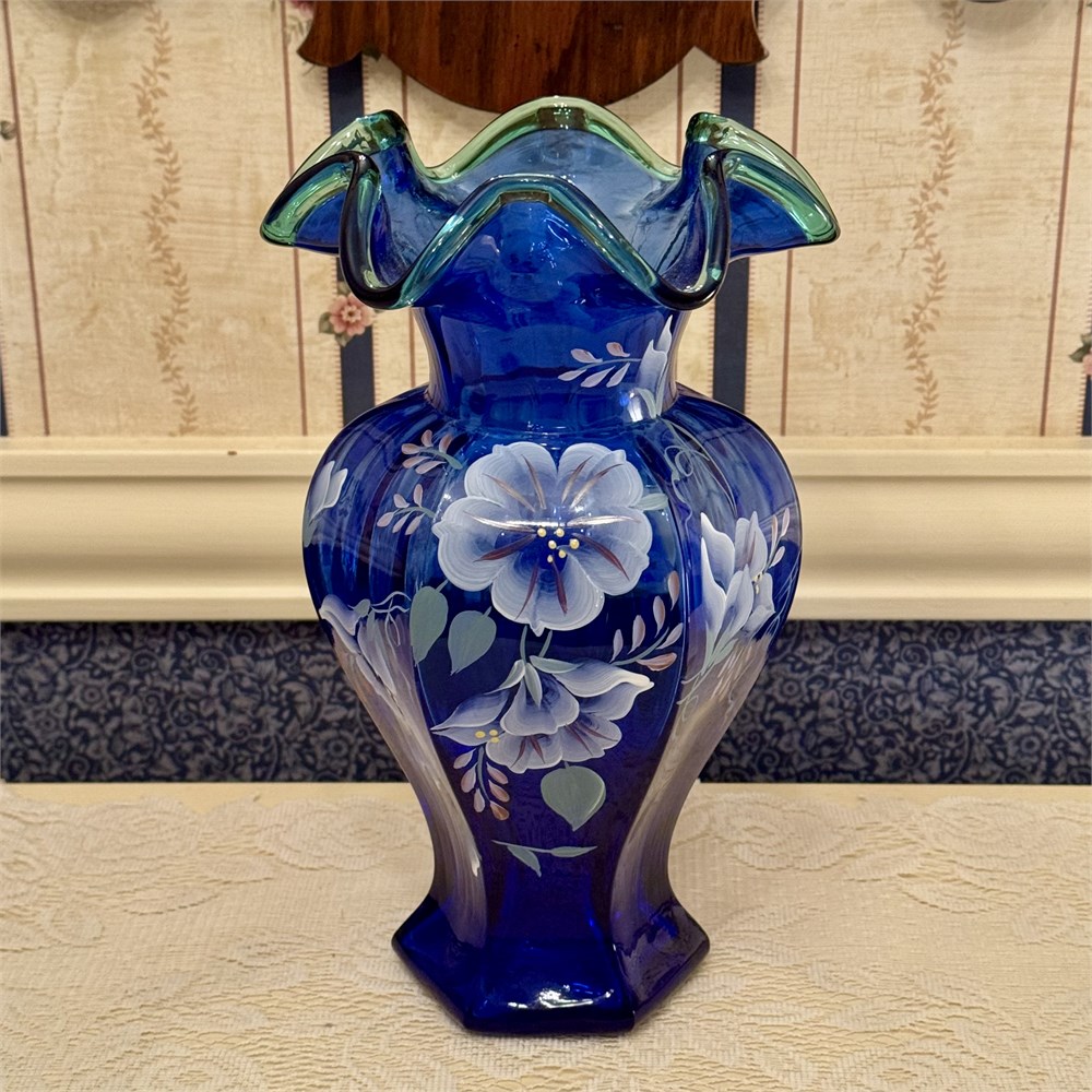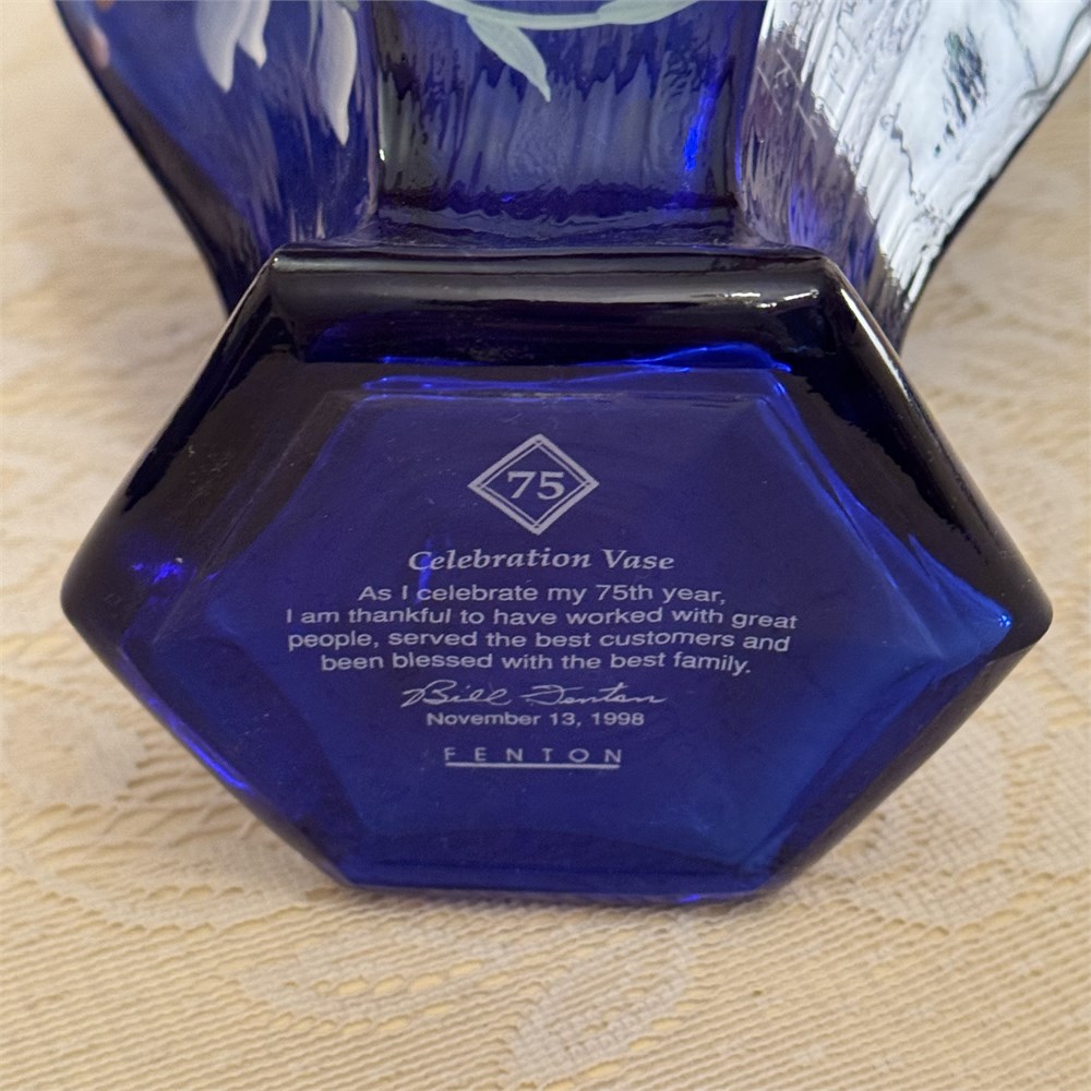 1998 Fenton 75th Anniversary Signed Hand Painted Art Glass Vase - 9.5"T